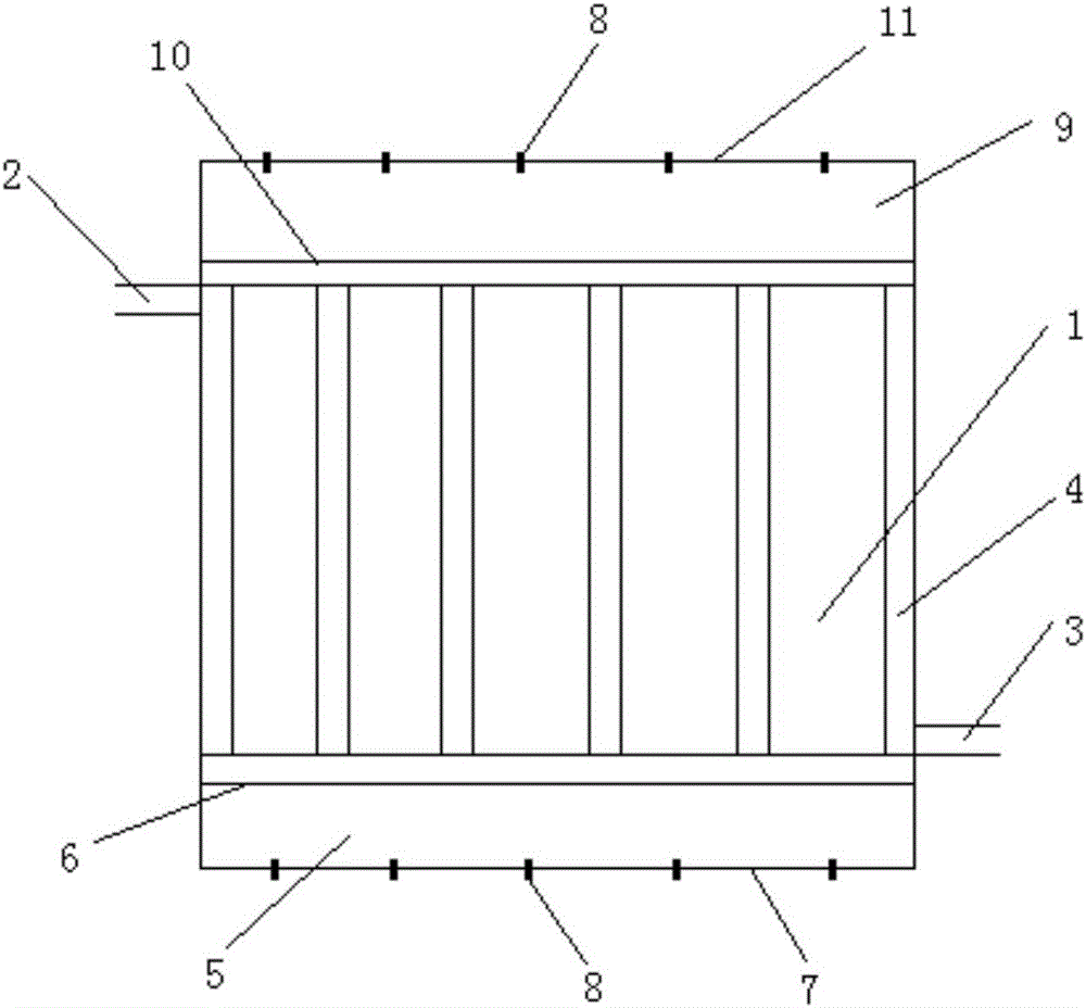 本实用新型属于暖气设备技术领域,涉及一种新型暖气罩体,特别是一种能够吸附室内灰尘而净化空气,增加暖气片的美观性,并保护和延长暖气片的使用寿命的空气过滤式暖气装置,包括暖气片、进液口、出液口、液流管、下罩壳、下过滤层、下罩壳顶面、散热孔、上罩壳、上过滤层和上罩壳顶面,暖气片的外部两侧分别开设有进液口和出液口,暖气片的内部设置有液流管,暖气片的底部和顶部分别设置有下罩壳和下过滤层与上罩壳和上过滤层,下罩壳顶面和上罩壳顶面均开设散热孔,采用一体化成型工艺制作的暖气装置,避免灰尘和水汽积聚在暖气片上而影响取暖和美观性;其整体结构简单,安装使用方便,安全可靠,使用环境友好,应用广泛。