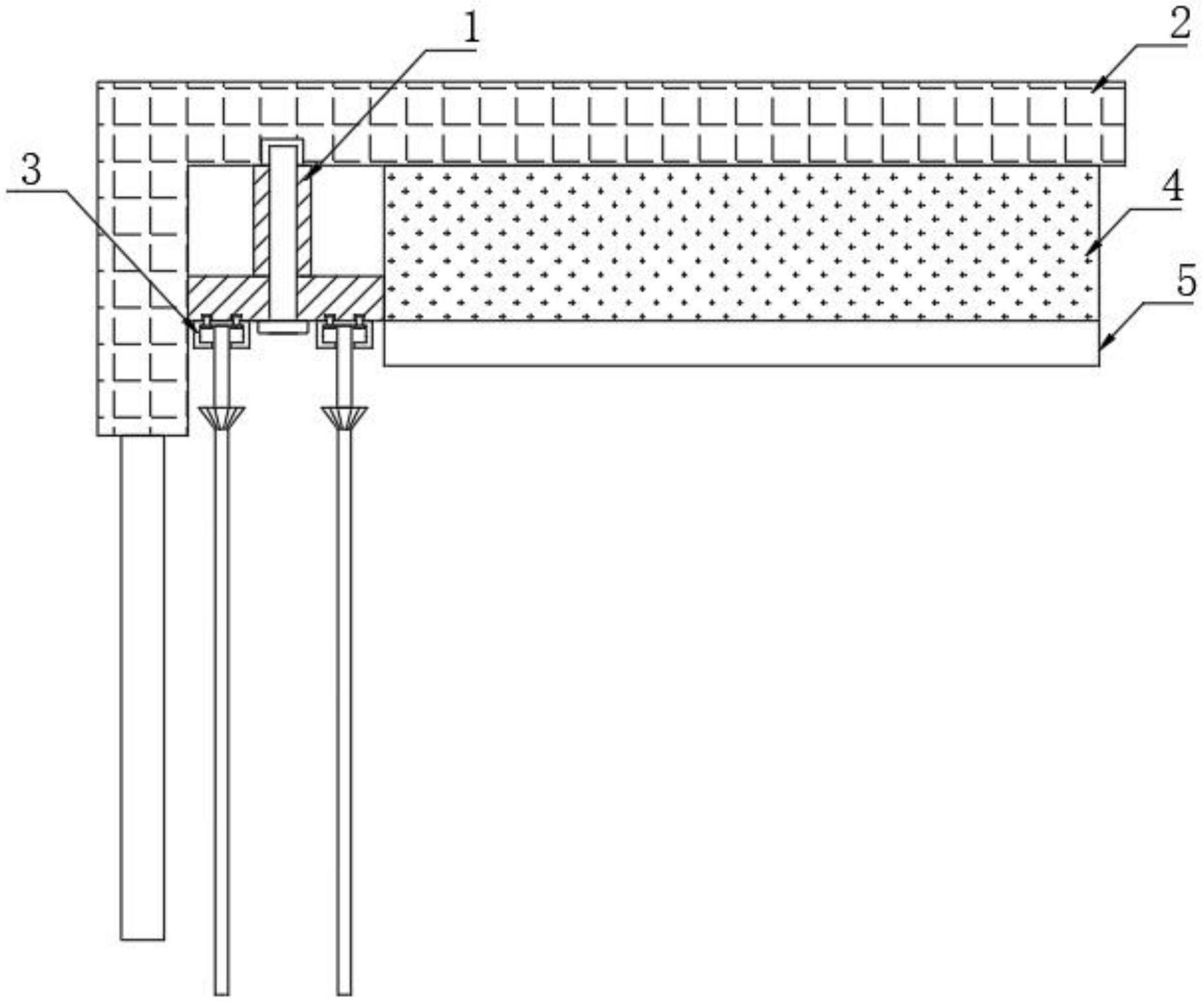 本实用新型公开一种窗帘盒的搭接结构,具体涉及装饰工程及其材料技术领域,包括两块所述防腐木呈T型设置,所述防腐木顶部设置有墙板,所述防腐木底部设置有第一条形扣板,所述墙板底部设置有立面扣板,所述立面扣板顶部与墙板底部固定连接,所述立面扣板一侧与防腐木一侧固定连接,所述立面扣板底部设置有第二条形扣板,所述第二条形扣板与立面扣板固定连接。本实用新型通过设置防腐木代替石膏,从而使窗帘盒在潮湿环境下不会变形开裂,使窗帘盒使用寿命得到延长,提高了窗帘盒的实用性,减少了资源的浪费,降低了垮塌事故发生的概率。