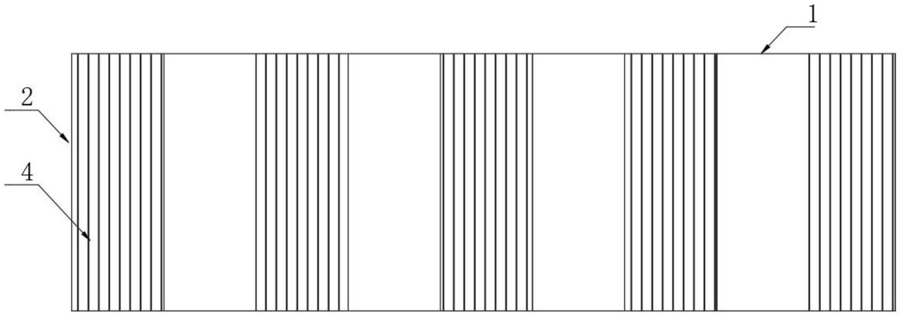 本实用新型公开一种新型吊顶材料,具体涉及建筑材料技术领域,包括基板,所述基板顶部设置有两组回折部,所述回折部与括基板顶部固定连接,所述回折部的上方设置有弯折部,所述基板、回折部以及弯折部为一体式结构设计,两组所述回折部之间设置有多个瓦楞芯本体,多个所述瓦楞芯本体之间设置有第一空隙。本实用新型通过设置基板、回折部、弯折部、瓦楞芯本体,将原本较薄的铝合金板制作成吊顶所需吊顶,而且不易变形。