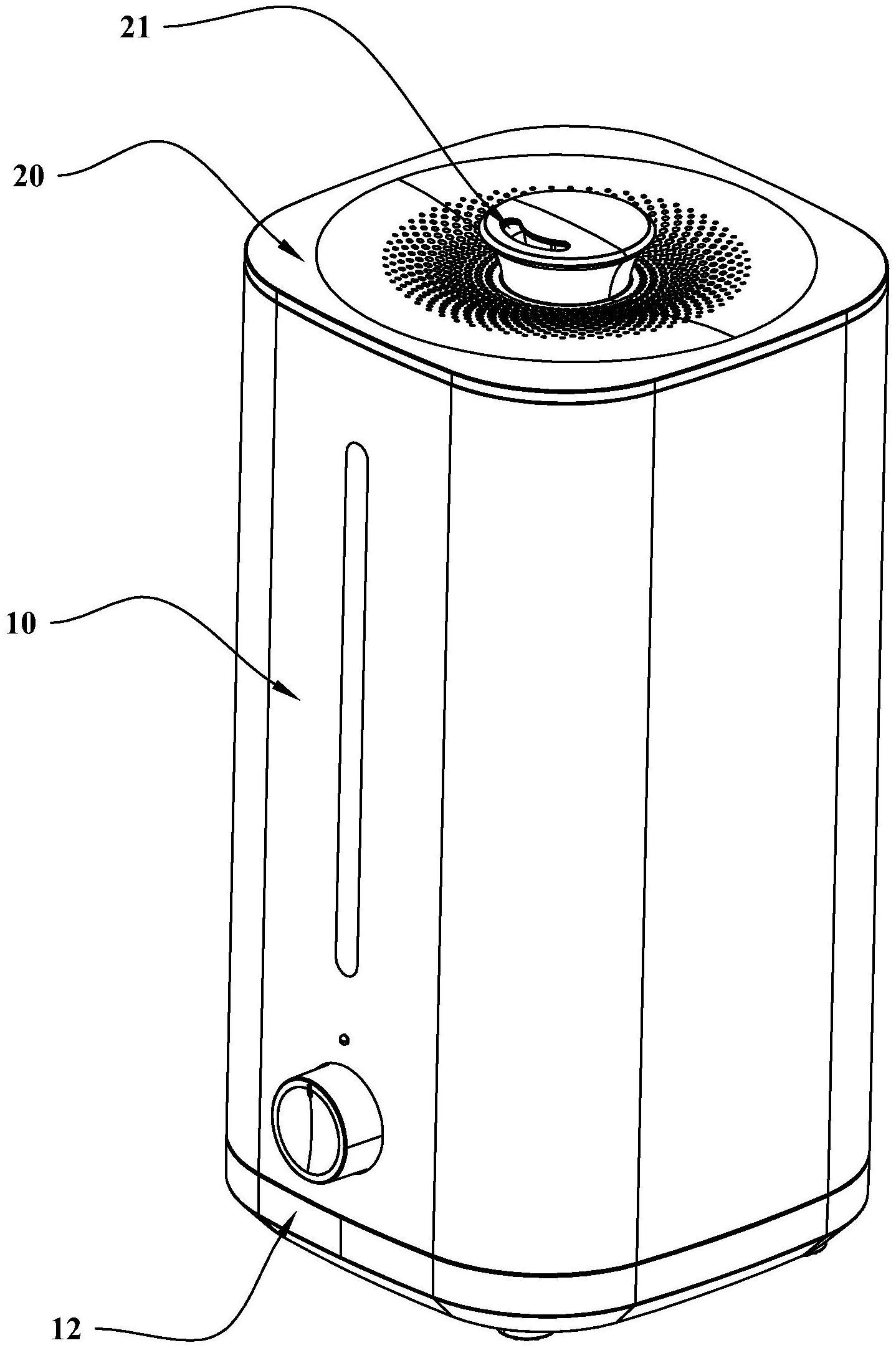本实用新型公开了一种上加水式加湿器,包括:箱体、箱盖组件、鼓风器及雾化器;箱体围设有腔室,箱盖组件可盖合腔室;箱体内设有分隔壁;分隔壁将腔室分隔为储水腔和雾化腔;雾化器位于雾化腔;箱盖组件设有出雾口,雾化腔可拆卸地安装有导雾管;导雾管可连通雾化腔和出雾口。本实用新型的雾化腔和储水腔均形成在箱体的内部,储水腔与雾化腔不存在因水箱与底座安装导致的缝隙。因此不存在水溢出雾化腔、或渗出水槽,或沿缝隙渗入底座等现象,实现上加水式加湿器高效的防水性能;需要清洗雾化腔时,拆卸导雾管即可进行清洗,使用清洗方便。