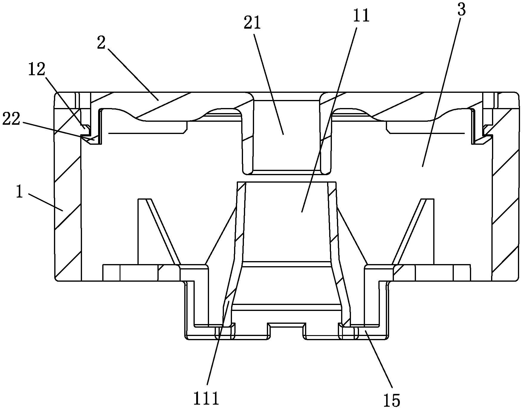 本实用新型涉及一种加湿器的二级聚合器结构,包括聚能环主体以及设置于其上端的聚能环上盖,聚能环主体与聚能环上盖之间形成聚能腔,聚能环主体上设有下聚能孔,聚能环上盖上设有上聚能孔,下聚能孔与上聚能孔相互同心设置,聚能腔分别与上聚能孔以及下聚能孔连通,下聚能孔的底部设有内径由上至下递增的喇叭口,上聚能孔的内径小于下聚能孔的内径,超声波震荡发生器产生的震荡能量与聚能环主体的底部作用后形成水雾,当水雾经过下聚能孔进入聚能腔后,震荡能量可以继续与聚能环上盖作用,从而起到二级聚能的效果,提高震荡能量的利用效率,提升整体雾化效果。