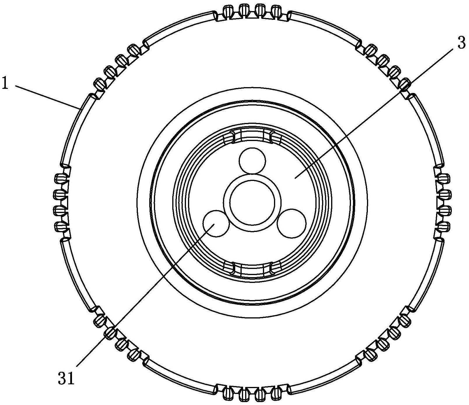 本实用新型涉及一种上加水加湿器的消声水箱盖结构,包括用于连接上水箱和底座的水箱盖主体,水箱盖主体上设有连接管,连接管内设有隔板,隔板上设有贯穿其的堵水阀芯,堵水阀芯的上端部设有伞型密封硅胶,伞型密封硅胶随堵水阀芯作上下方向的往返运动以打开或者关闭连接管,隔板上设有若干个下水圆孔,下水圆孔以堵水阀芯为中心均匀地分布,下水圆孔的直径为4mm‑4.6mm,下水圆孔的设计可以降低下水时水流经过其的速度,从而降低下水时产生的噪音,对加湿器的下水起到消声降噪的效果。