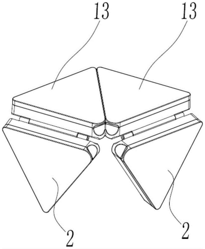 本实用新型提供了一种可折叠式化妆品容器,其包括第一盒体,第一盒体具有第一盒身和第一盒盖,第一盒盖转动连接于第一盒身上,第一盒身的至少一侧边上转动连接有第二盒体,第二盒体具有第二盒身和第二盒盖,第二盒盖转动连接于第二盒身上,第二盒身转动连接于第一盒身的侧边上。本实用新型相较于现有技术在折叠状态时可以更加便于携带和使用,并且可以按需打开相应的盒体使用需要的化妆品,使得化妆品不会受到无谓的污染和浪费。