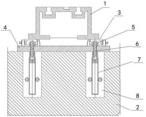 本实用新型公开了一种大中型设备可调地基基础,属于设备基建技术领域。包括钢制厚垫板、螺母、双头螺栓、预埋螺栓和混凝土桩,钢制厚垫板底部等间距的螺纹旋入有数个双头螺栓,钢制厚垫板上设有螺纹旋入双头螺栓的螺母,钢制厚垫板下方设有螺纹旋入双头螺栓的预埋螺栓,预埋螺栓插入场地地面开设的预埋孔内,混凝土灌入预埋孔,混凝土固化、养生后形成混凝土桩。该地基基础与大型钢筋混凝土地基基础相比,结构简单,用料少,成本低,易于操作,可以实现大中型设备正常安装使用,同时后期能够进行调整找平,提高地基基础的使用寿命。