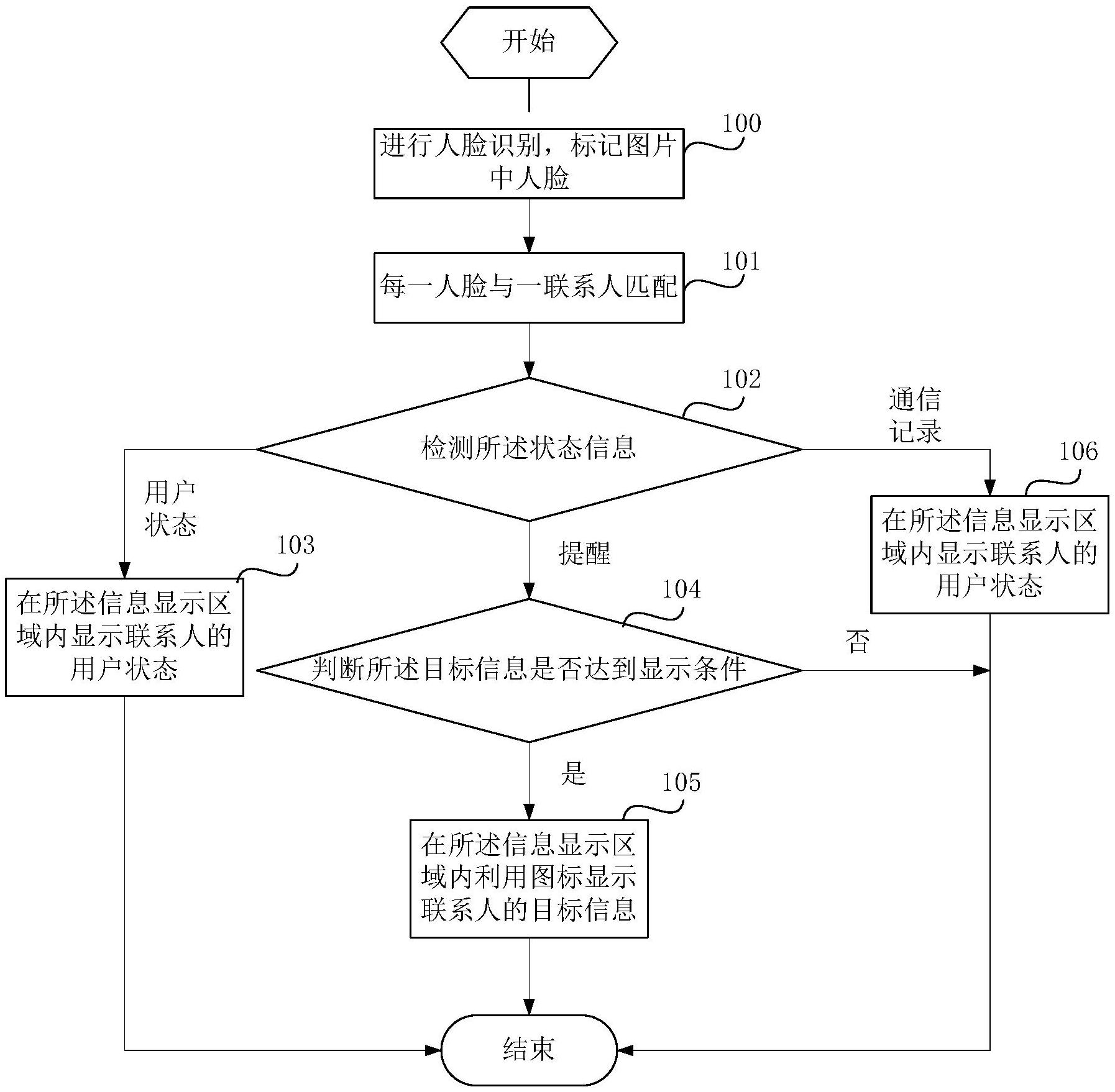 本发明公开了一种信息显示方法及移动终端,所述移动终端包括一触控显示屏,所述移动终端存储图像中至少包括一个人物的图片,所述信息显示方法包括:对移动终端存储的一第一图片进行人脸识别,标记图片中人脸;每一人脸与一联系人匹配;在信息显示区域中显示对应的人脸所匹配联系人的状态信息;其中,信息显示区域与人脸一一对应,所述信息显示区域为所述图片上的区域。本申请方便用户了解图片中联系人的通信状态,为用户进一步交流提供便利,简化手机的操作步骤。