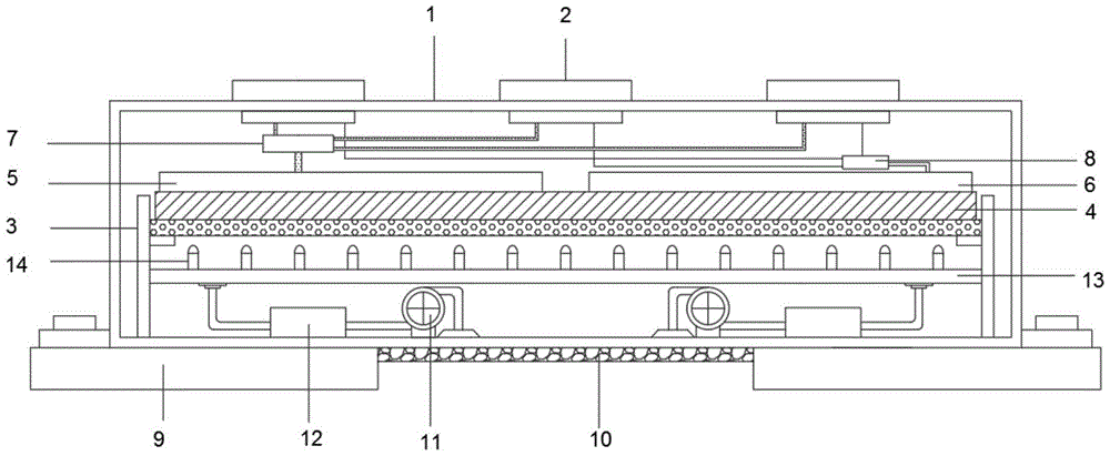 本实用新型涉及一种用于OPS主板的热插拔防护装置,包括主板壳体,所述主板壳体顶部固定连接有热插拔接头,所述主板壳体内部设有支撑板,所述支撑板底部与主板壳体内壁固定连接,所述支撑板一侧固定连接有定位块,所述定位块上方设有安装板,所述安装板为镂空式结构,所述安装板上方设有主板本体,所述主板本体上方设有IC芯片板,所述IC芯片板一侧设有供电模块板,所述IC芯片板与热插拔接头之间设有逻辑控制电路模块,所述供电模块板与热插拔接头之间设有供电控制电路模块,本实用新型结构新颖,设计合理,可对热插拔接头的电路系统进行保护,避免产生过流现象,同时可对主板本体进行散热处理,避免主板处于高温环境中发生损坏。