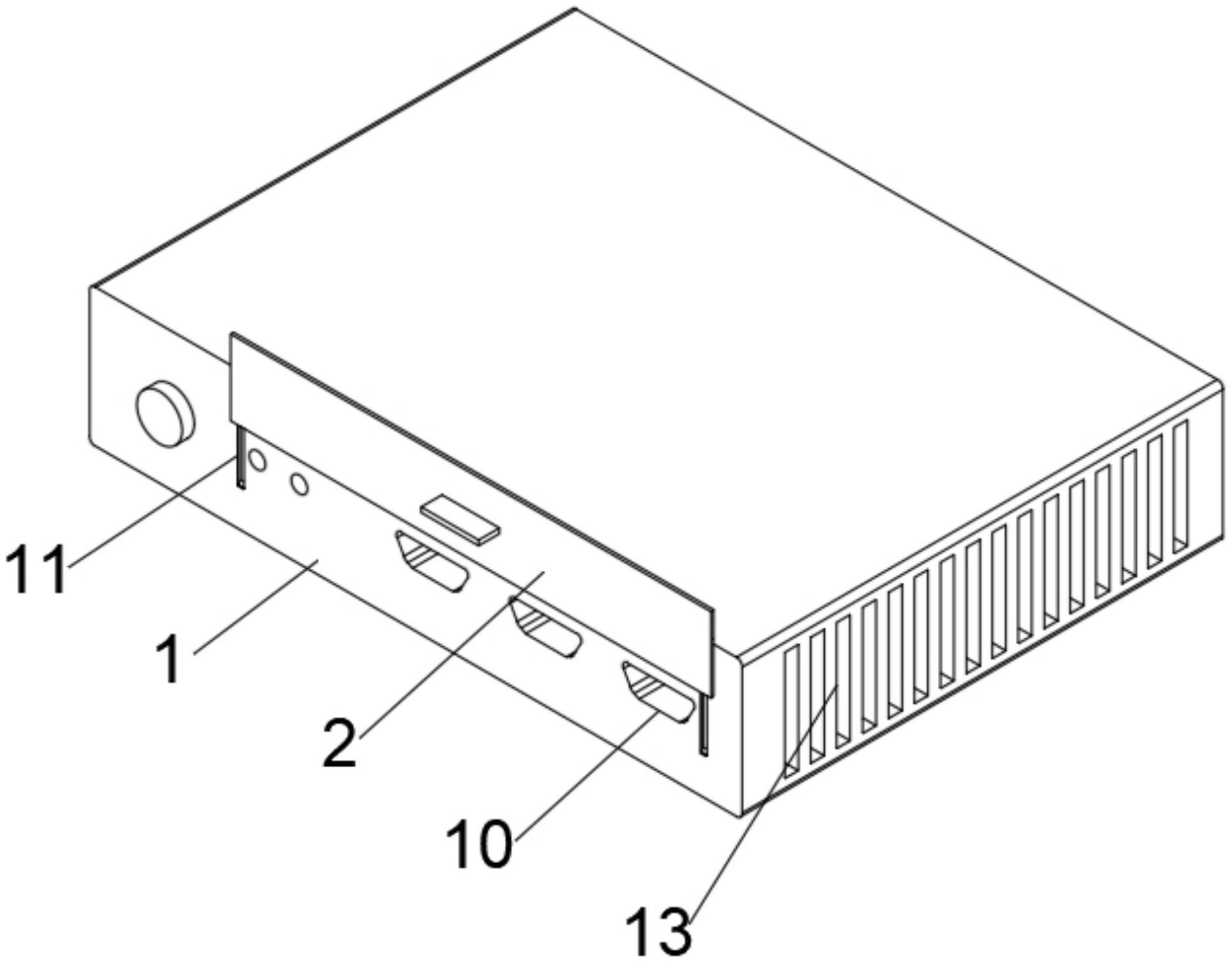 本实用新型涉及云服务器终端技术领域,具体为一种具有多个HDMI接口的云服务器终端,包括云终端机体,所述云终端机体的表面开设有若干并排排列的HDMI接口,所述云终端机体的侧面开设有若干呈条状的散热口,所述云终端机体上还活动安装有活动接口遮挡组件,所述活动接口遮挡组件包括可沿着云终端机体表面上下移动的遮挡条和固定在遮挡条上的推块,本实用新型通过在多个HDMI接口的一侧设置活动接口遮挡组件,并通过活动接口遮挡组件的自由上下移动,可实现在需要使用HDMI接口时,将其敞开,在不需要使用HDMI接口时,将HDMI接口遮挡,从而实现HDMI接口的防尘防潮效果。
