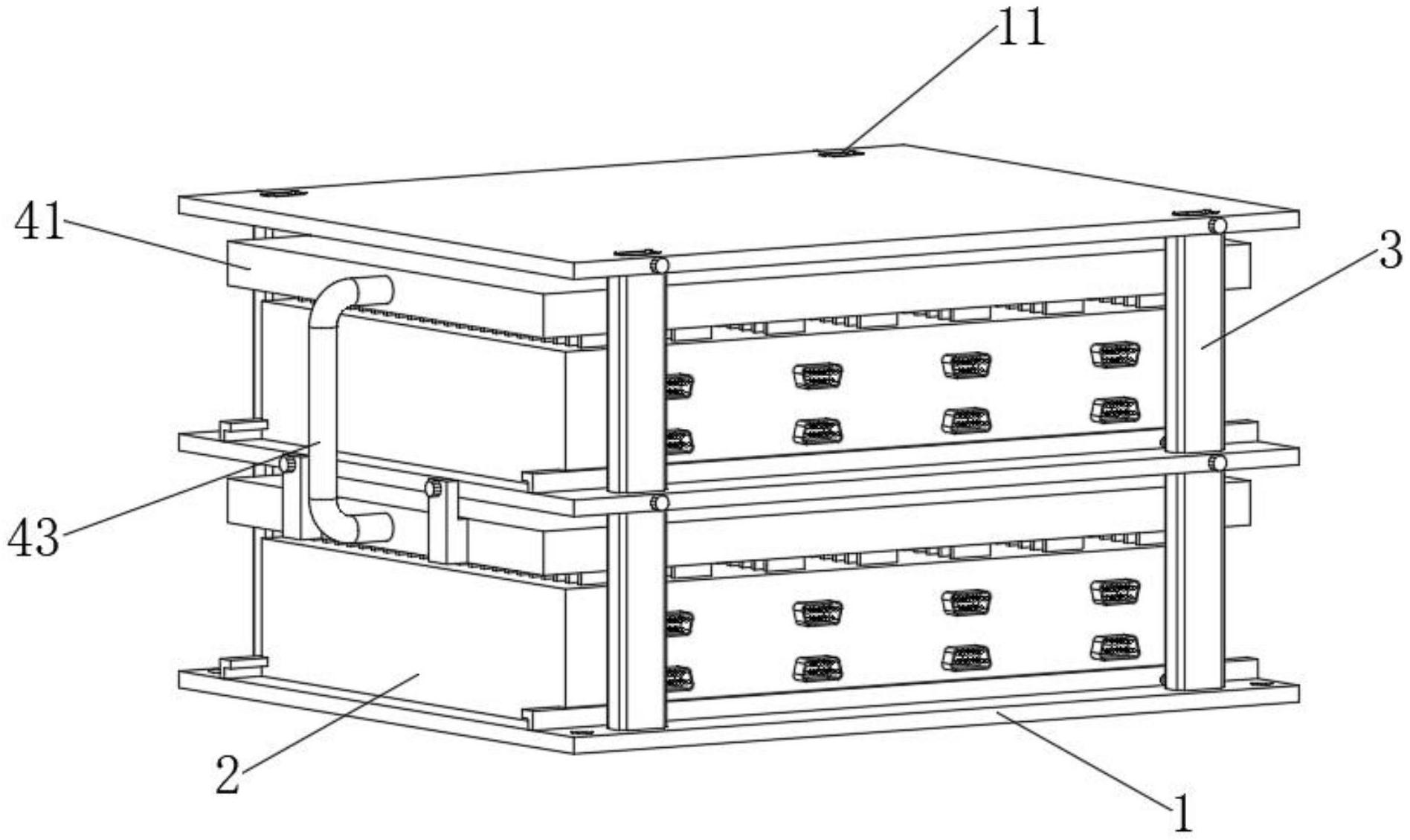 本实用新型涉及服务器终端设备,具体为一种具有多个显卡接口的云计算服务器终端,包括多个安装板,多个安装板依次自下而上设置,每相邻两个安装板之间靠近四角位置均设置有安装柱,安装板的顶壁上设置有终端本体,多个安装板之间还设置有降温机构。本实用新型通过多个安装板和多个安装柱的配合,可以快速搭构多个服务器终端的安装平台,利用同样可以快速临时搭建的降温机构,确保了整体的高效降温,解决了一般的整体云计算服务器终端,都是提前将多个服务器终端整体安装在柜体内,不仅在运输过程不便,且无法根据实际的使用情况增设服务器终端的数量,一定程度上会提高成本,且柜体安装还会导致终端降温效果不佳的问题。