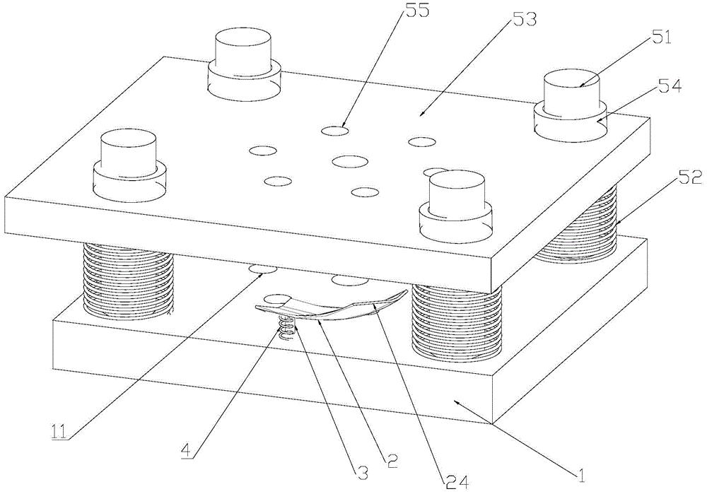 本实用新型提供了一种定位夹持装置,包括底座,在底座上设置对称设置两组夹持板,所述夹持板设置为异形件,在夹持板的横向上设置夹持部和控制部,所述夹持部和控制部之间设置平滑过渡的连接部,所述连接部铰接于铰接座上,所述铰接座与底座固定;所述控制部下方连接张紧弹簧,夹持部与底座相抵;所述夹持板的纵向设置相对底座翘起的凸起部。本实用新型所述的一种定位夹持装置,设计异形件的夹持板,使定位夹持稳定,且上料简单,使加工简单。