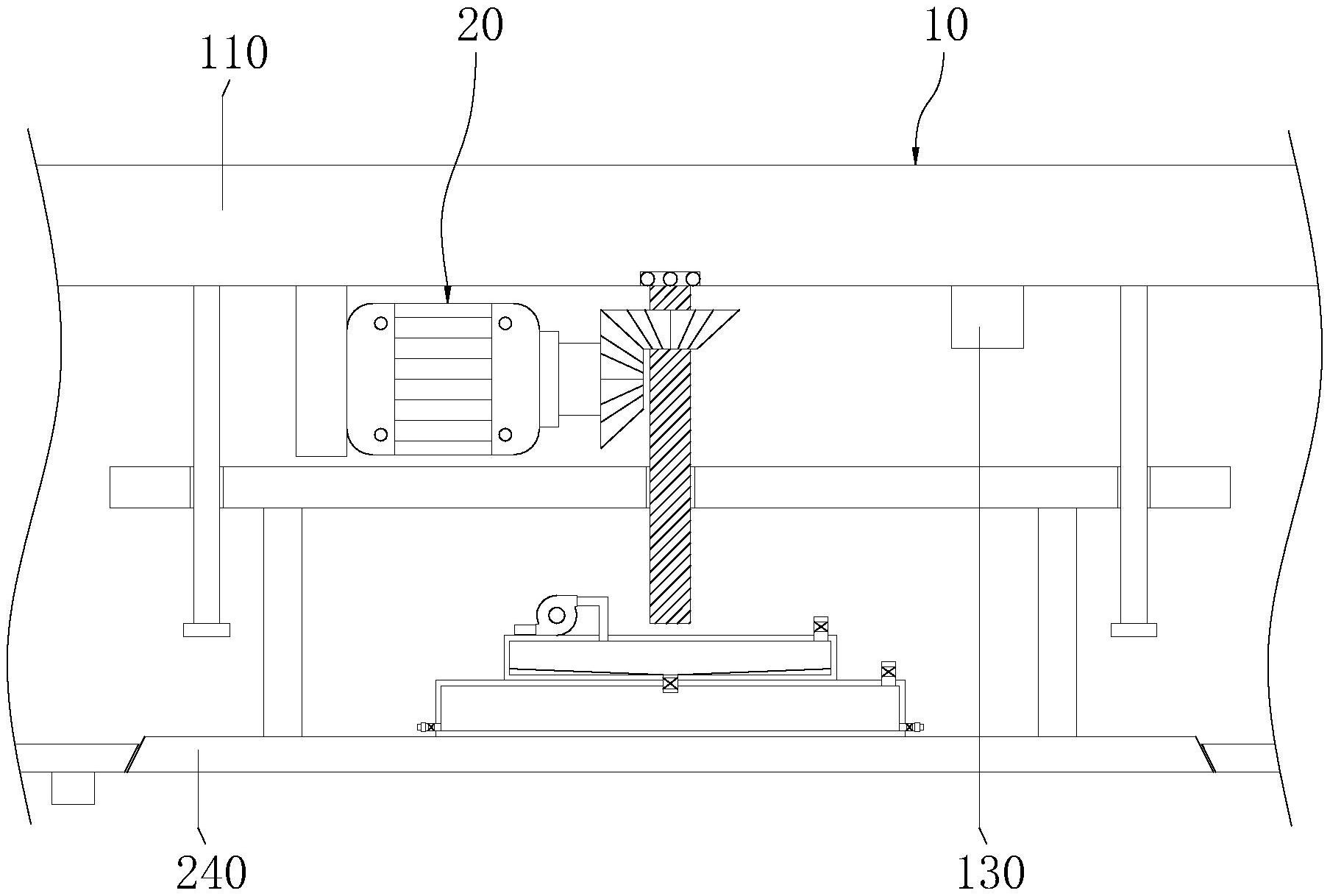本实用新型提供了一种具有防火功能的演播室系统,属于防火系统技术领域。该具有防火功能的演播室系统包括支撑机构和防火机构。所述支撑机构包括屋顶板、天花板、PLC控制器、导轨和烟雾传感器,所述天花板连接于所述屋顶板一侧,所述烟雾传感器安装于所述天花板一侧。本实用新型通过烟雾传感器、PLC控制器、电机、第一圆锥齿轮、第二圆锥齿轮、螺纹杆、滑板、支杆、吊板、硫酸铝箱、碳酸氢钠箱、第一电磁阀、风机和第三电磁阀、连接管和喷嘴的作用,从而达到了具有防火功能的目的,在电子设备因长时间使用,导致积累大量的热量和线路老化后,可增大电子设备周围二氧化碳含量,使电子设备不易燃烧,进行阻燃,不易造成经济损失。