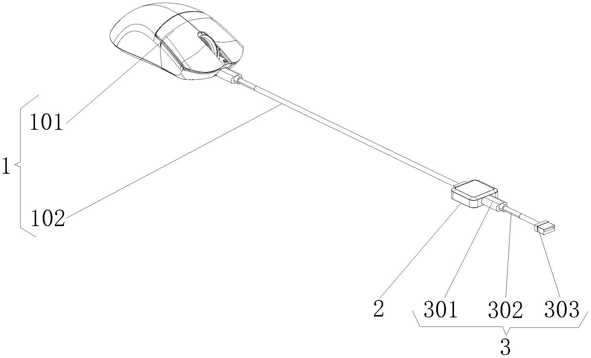 本实用新型公开了一种具备LCD显示功能的鼠标,包括鼠标本体、显示组件和第二数据线,显示组件包括第二控制板、USB接口、显示屏和Type‑C接口,第二数据线插接Type‑C接口,USB接口和Type‑C接口固定在第二控制板上,显示屏固定安装在第二控制板上,且显示屏电连接第二控制板,第二控制板电连接鼠标本体。本实用新型通过显示组件包括第二控制板、USB接口、显示屏和Type‑C接口,USB接口和Type‑C接口固定在第二控制板上,第二数据线插接Type‑C接口且,第二控制板电连接鼠标本体,使得本实用新型可以通过第二控制板接收鼠标本体的数据,且显示屏电连接第二控制板,使得第二控制板接收鼠标本体当前灵敏度信息并在显示屏上进行显示。