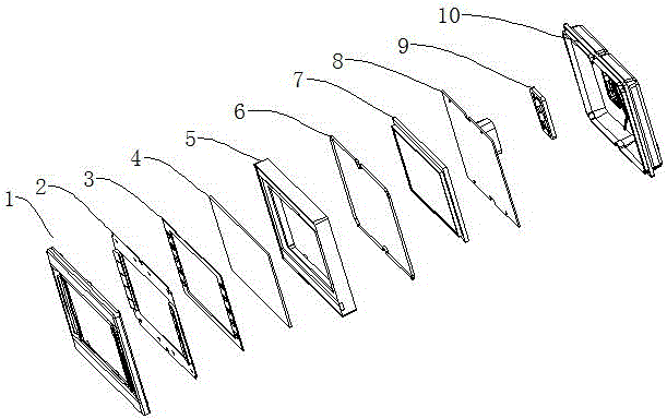 本实用新型公开了一种防水型触摸屏,包括前盖、带有若干橡胶按键的塑料板、锅仔片、玻璃、中盖、O型圈、屏幕、后盖板、后盖橡胶和后盖,所述塑料板在所述前盖下方,所述锅仔片在所述塑料板下方,所述玻璃在所述锅仔片下方,所述中盖在所述玻璃下方,所述O型圈在所述中盖下方,所述屏幕在所述O型圈下方,所述后盖板在所述屏幕下方,所述后盖在所述后盖板下方,所述后盖板和后盖之间设有一后盖橡胶。有益效果:具有设计合理、结构简单、使用方便、性能优良、实用等优点,较好地解决了带有按键的触摸屏的防水问题。