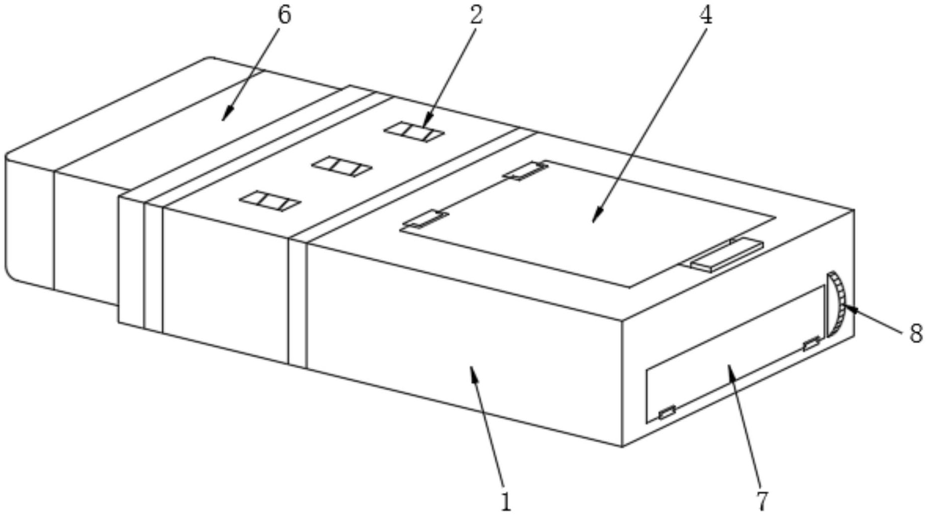 本实用新型公开了一种具有清洁结构的万能读卡器,包括USB连接器本体,所述USB连接器本体上表面的一侧固定连接有指示LED灯,且USB连接器本体的内部固定连接有读卡槽,所述USB连接器本体的上表面通过合页铰接有第一密封盖,所述第一密封盖的下表面固定连接有紧贴在读卡槽上侧的加固块,所述USB连接器本体连接端的外侧套设有防护套,且USB连接器本体的另一侧表面通过合页铰接有第二密封盖,本实用新型涉及读卡器技术领域。该具有清洁结构的万能读卡器中防护套设置有嵌入在USB接口内部的连接块,并且通过拉伸滑动壳,可以将清洁构件伸入到USB接口的连接部位中,从而可以对USB接口的内部深度清洁,通过收纳辊可以对清洁布进行收卷。