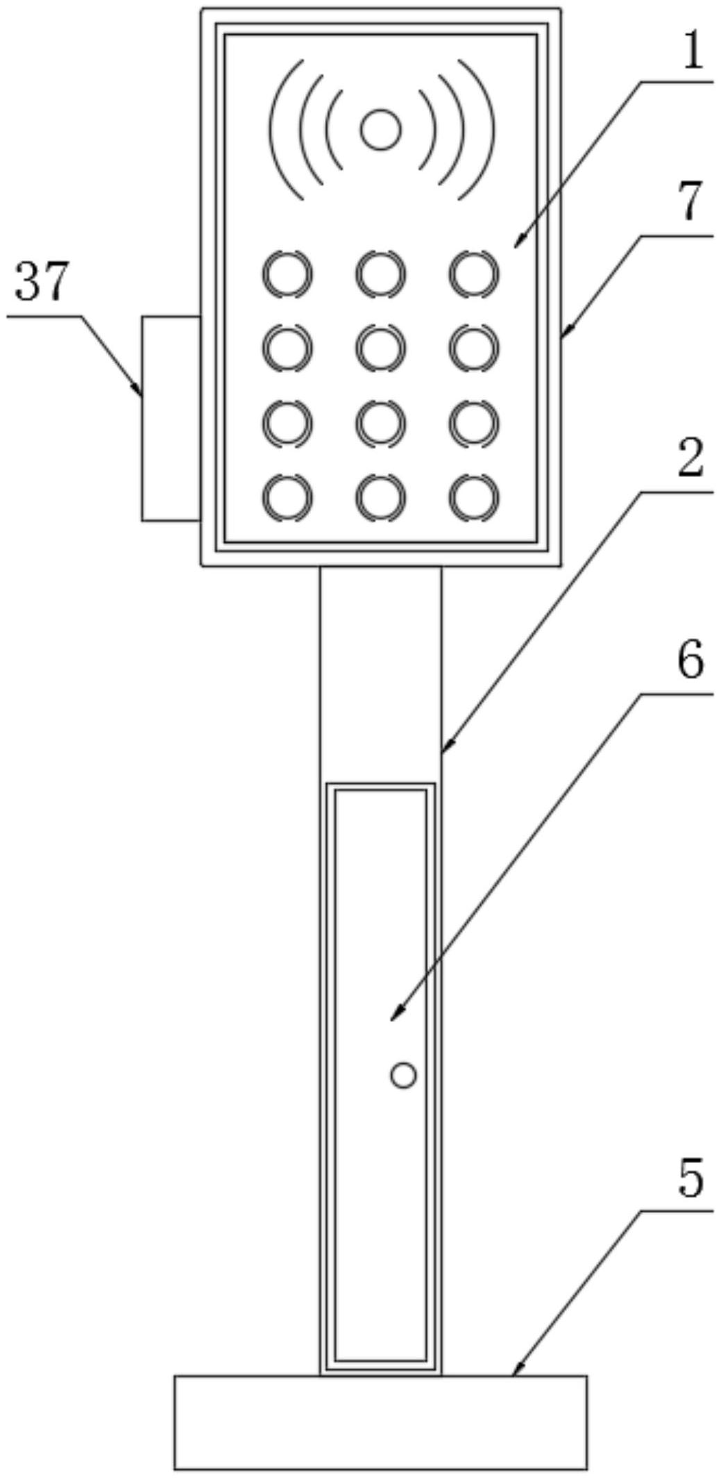 本实用新型公开了一种具有防爆结构的触摸式读卡器,涉及到触摸式读卡器领域,包括读卡器本体,读卡器本体的底部设置有支撑柱,支撑柱内开设有第一凹槽,且第一凹槽内设置有防爆机构;防爆机构包括与第一凹槽侧壁固定连接的灭火筒,灭火筒的顶部固定连通有输气管,输气管的外壁设置有阀门,输气管的顶部固定连接有抽风机,抽风机的外壁与支撑柱的内壁固定连接;抽风机的顶部固定连通有导气管,读卡器本体的底部固定连通有连接管,连接管与导气管相互插接,读卡器本体的左侧固定连接有温度传感器。本实用新型能够有效的避免读卡器本体发生爆裂,提高了使用者的安全性,同时能够方便对读卡器本体进行拆装。