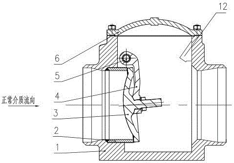 本实用新型公开了一种抽汽止回阀,其包括阀体、设于阀体内的阀座、摇臂、阀瓣以及阀盖,所述阀瓣通过摇臂固定设置在阀体内,所述阀瓣与阀座构成密封配合,所述阀盖设置在阀体上方,所述阀体任意一侧设有气动操作机构,所述气动操作机构的驱动杆与摇臂的转轴联动配合,所述阀瓣包括圆盘状的基盘,所述基盘的后表面中心向外延伸设有弧面,所述摇臂与基盘的弧面配合处呈斜面设置,利用阀瓣与摇臂的配合处为弧面与斜面的配合,提高阀瓣与摇臂之间的转动自由度,并且在长时间使用时,阀瓣自由根据两者之间的配合自由度,更精准的与阀座构成密封配合。