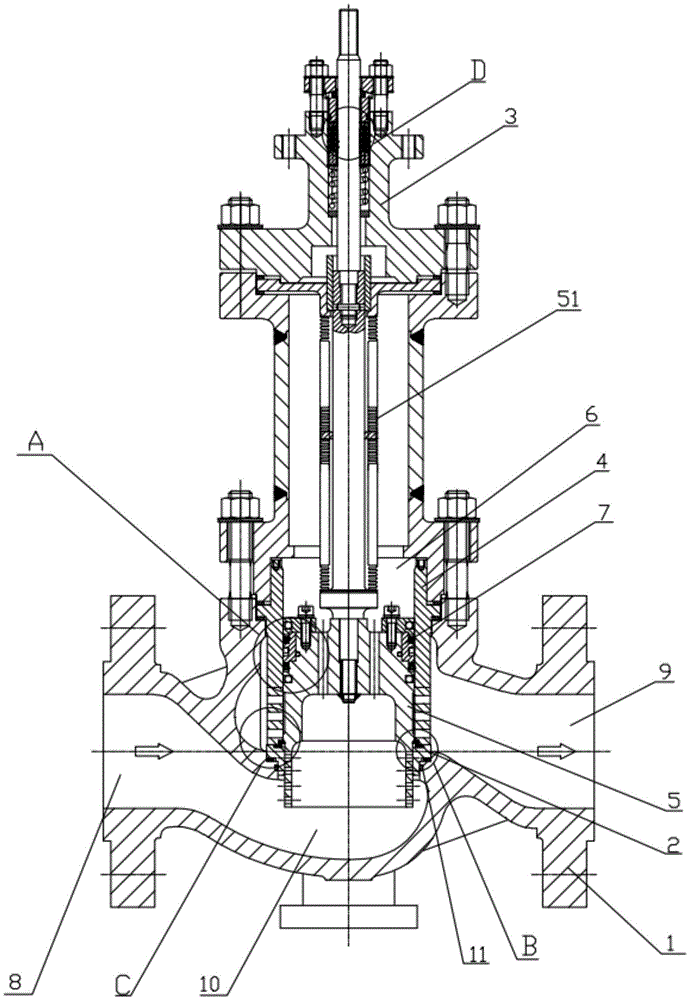 一种燃气系统的值班气控制阀,包括阀体、阀座、阀盖、套筒、阀芯以及波纹管组件,套筒安装在安装腔内且套装在所述阀座外部,阀体的两端开设进口与出口形成输送通道,阀芯与阀座之间设置双密封结构,所述阀芯与套筒之间设置正向密封件与反向密封件,所述正向密封件包括第一格莱圈、正向平衡密封圈、星型圈,反向密封件包括反向平衡密封圈与第二格莱圈,正向平衡密封圈设置开口朝上的金属弹簧及O型圈,所述反向平衡密封圈设置开口朝下的金属弹簧及O型圈,所述星型圈具有凸出的密封部,所述密封部与内衬套、套筒密封相接。本实用新型设置双向密封结构,能够实现正向压力与反向全压下的零泄漏。