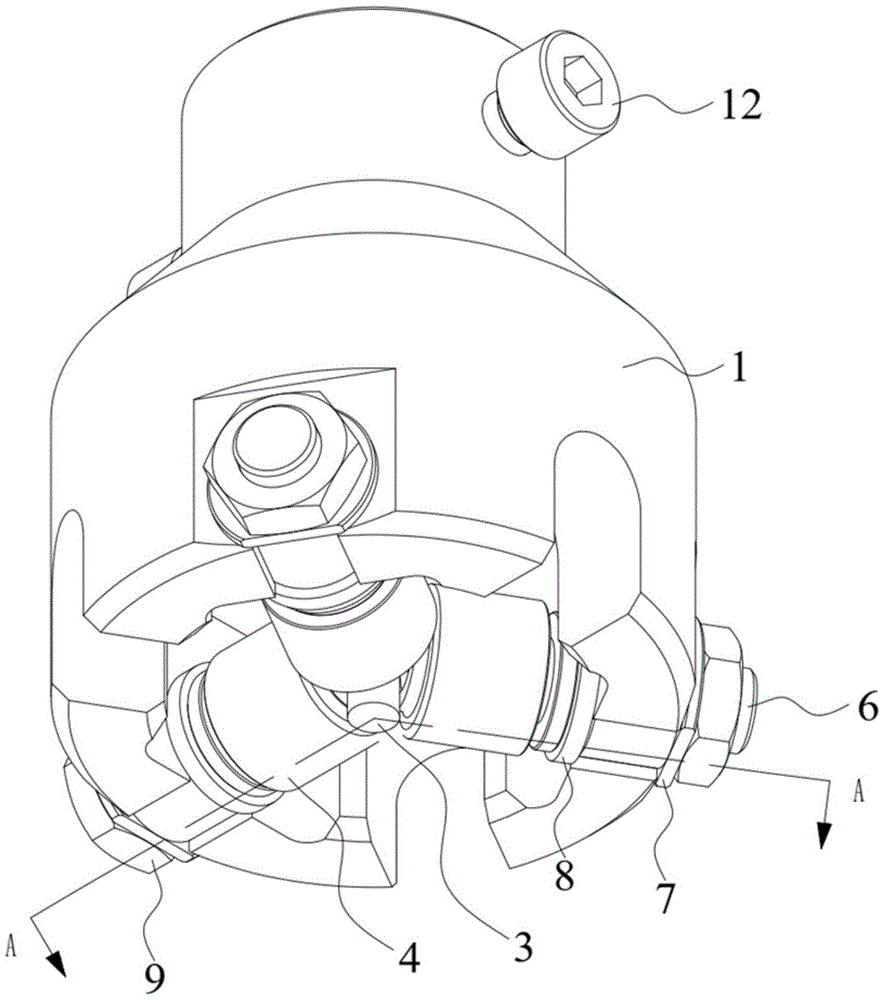 本实用新型涉及圆柱电池生产技术领域,具体公开了一种圆柱电池封口结构。该结构包括安装架、定位组件和封口组件。安装架的中部设置有安装孔,工作臂的一端可拆卸安装于安装孔内;定位组件包括定位杆、转动连接件、弹性件和限位件,弹性件一端连接转动连接件,另一端抵接于工作臂上,定位杆一端连接转动连接件,另一端用于定位圆柱电池,弹性件能使定位杆沿定位杆的轴向运动,且限位件用于限定定位杆的运动范围,转动连接件能使定位杆沿定位杆的周向旋转;封口组件用于封口圆柱电池,封口组件设有多个,封口组件围绕定位杆周向均布设置,且可拆卸安装于安装架上。该结构能够保证圆柱电池在封口过程中稳定居中,提高了圆柱电池成品的质量。