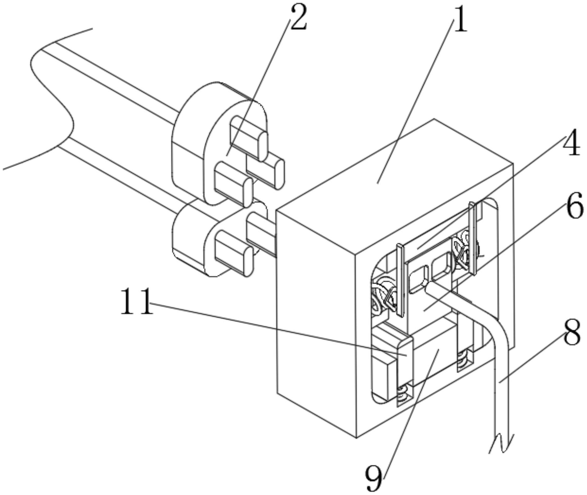 本实用新型涉及稳压器技术领域,且公开了一种新型节能稳压器,包括外壳,所述外壳的外部设置有插座,外壳的内部固定连接有连接块,外壳的内顶壁固定连接有N极磁铁,外壳的内部固定连接有固定柱,固定柱的外部滑动连接有滑动块,滑动块的外部固定连接有限位弹簧,滑动块的外部固定连接有导电线,外壳的内壁固定连接有S极磁铁,外壳的内壁固定连接有压缩弹簧,压缩弹簧远离外壳的一端固定连接有限位块,外壳的内底壁固定连接有侧板,外壳的外部固定连接有弹簧片;通过外壳、插座、连接块、N极磁铁、固定柱、滑动块、限位弹簧、导电线、S极磁铁的相互配合使用,就能达到不用电力驱动更加节能环保的效果。
