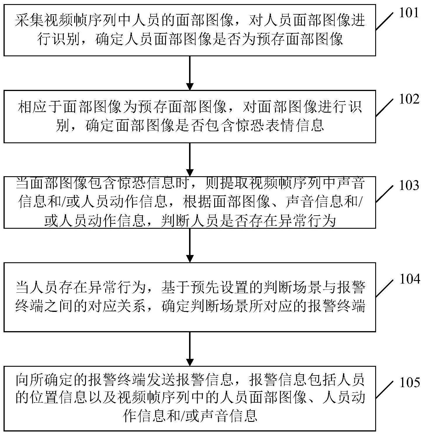 本申请提供一种利用家庭监控视频提高家庭安全的方法及系统,其中,方法包括:响应于面部图像为预存面部图像,对面部图像进行识别,确定面部图像是否包含惊恐表情信息;当面部图像包含惊恐信息时,则提取视频帧序列中声音信息和/或人员动作信息,根据面部图像、声音信息和/或人员动作信息,判断人员是否存在异常行为;当人员存在异常行为,基于预先设置的判断场景与报警终端之间的对应关系,确定判断场景所对应的报警终端;向所确定的报警终端发送报警信息。本申请能根据家庭监控视频中人员的面部表情、声音、人员动作信息实时检测出人员的异常行为,及时报警给相关人员,避免了家庭被外人入侵以及家人处于不安全状况下,满足人们对监控系统的需求。