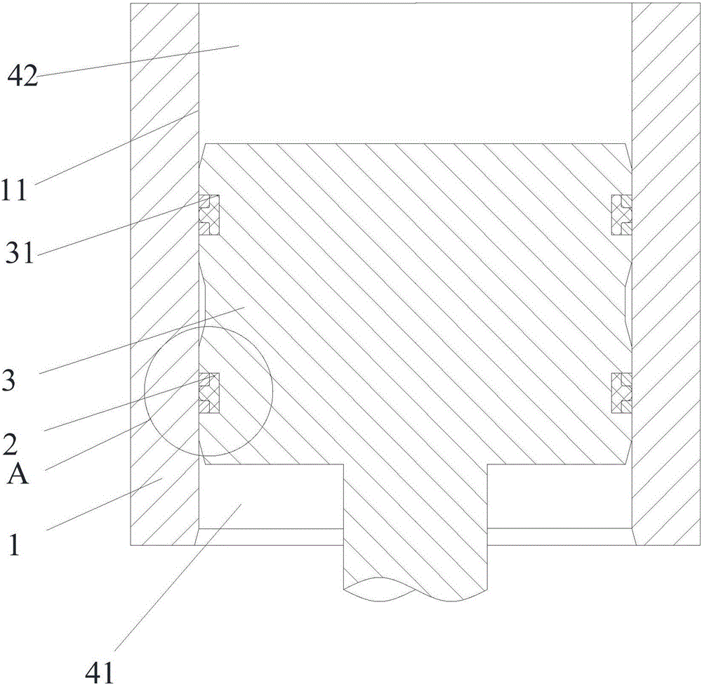 本实用新型提供一种活塞密封装置,其包括有缸体和活塞,所述活塞设置有环状的沟槽,所述沟槽内设置有用于密封所述缸体和活塞的密封部件,其中,所述密封部件包括一密封圈以及设置在所述密封圈两侧的支撑圈,所述密封圈包括窄部以及宽部,所述宽部贴近于所述活塞,所述窄部贴近于所述缸体,所述支撑圈被容纳于由所述密封圈、所述缸体和所述活塞形成的空间内。通过本实用新型的运用,在高压力的情况下防止了密封圈在压力作用会向非压力侧挤压翻转及密封圈挤入活塞与缸体的配合间隙,且同时实现双向密封。