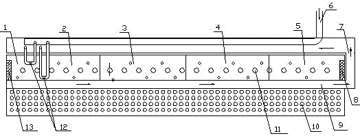 本发明涉及用于钢坯加热的板坯加热炉,具体是一种连续式板坯加热炉及其加热方法。加热炉包括炉体、炉膛、炉底传动承载辊、换热器,炉膛内自进口炉门至出口炉门的贯通长度内依次划分为预热区、低温区、高温区和均热区;炉底传动承载辊的主体部分为重结晶碳化硅空心棒管;换热器设置于炉膛下方呈卧式结构,换热器的空气换热排管与换热器风道组成空气循环往复运动通道;炉体的炉墙及炉弦由莫莱石砖砌成,进口炉门、出口炉门为自动控制炉门,炉体通过进口炉门、出口炉门形成全封闭结构。本发明实现了分区均匀加热,能确保板坯缓慢均匀透烧,板坯各面温度差不大于10℃,提高了产品质量和成材率,避免了水蒸汽产生,解决了板坯响裂的质量问题。