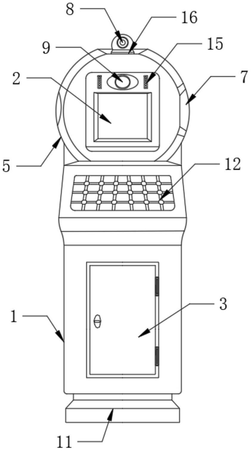 本实用新型公开了一种智能身份采集核验装置,包括立柱、查验机构、触控屏,所述检修门后侧的立柱内壁纵向设有一组锂电池,所述立柱的顶部表面竖直设有球形采集箱,所述查验机构包括人脸识别摄像头、扫描探头、智能门禁控制盒,所述人脸识别摄像头通过电动云台竖直设在采集箱的顶部表面中部,所述扫描探头斜向设在采集箱的前侧表面上端中部,所述智能门禁控制盒设在采集箱的内壁底端中部,所述触控屏斜向设在扫描探头下方的采集箱前侧表面。本实用新型利用身份证扫描器配合人脸识别摄像头完成身份信息的核验,并通过扫描探头采集人员的健康码信息以获取通行权限并在智能门禁控制盒作用下开启门锁以完成安全放行,使用效果好。