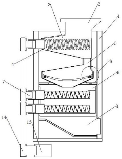 本实用新型提供了一种蓄电池极板生产废料回收装置,包括主体和入料口,入料口固定开设在主体的顶端,主体的内部固定开设有第一处理腔和第二处理腔,第一处理腔的内部嵌入设置有粉碎结构,粉碎结构包括有安装架、齿盘、连接头、粉碎辊和粉碎齿,齿盘、连接头、安装架同时对两组粉碎结构进行包围设置。在粉碎辊进行转动的时候,通过粉碎齿达到对电极板进行切割粉碎的效果,通过震动头达到辅助对粉碎之后的电极板进行过滤筛选的效果,粉碎完毕的电极板进入滤腔中,通过滤腔以及内部的弧形滤板达到对粉碎之后的电机板进行过滤筛选的效果,通过齿盘以及皮带达到同时带动粉碎而机构以及碾压辊进行转动的效果。