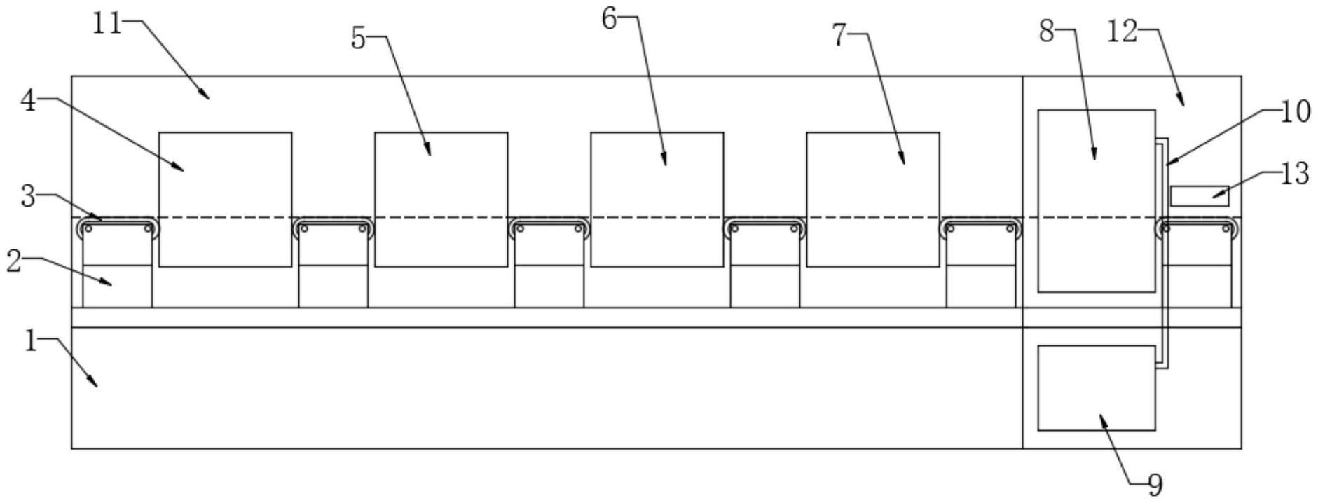 本实用新型提供一种印刷品水性香味涂布设备,包括底座、印刷间、以及涂香间,所述底座作为载体,所述底座上方设置有印刷间,所述印刷间右侧设置有涂香间,所述印刷间内设置有黑色油墨印刷组件、所述黑色油墨印刷组件右方设置有青色油墨印刷组件,所述青色油墨印刷组件右方设置有品红油墨印刷组件,与现有技术相比,本实用新型具有如下的有益效果:通过将增香工序设置在印刷后面进行,与直接在印刷单元油墨里面加入油性化学香精相比,更加的绿色环保,便于在印刷产品表面涂布均匀,产品散发的香味,不受印刷品墨位深浅的影响,持久有效,通过网纹辊涂布,解决了直接添加在印刷油墨里面的弊端。