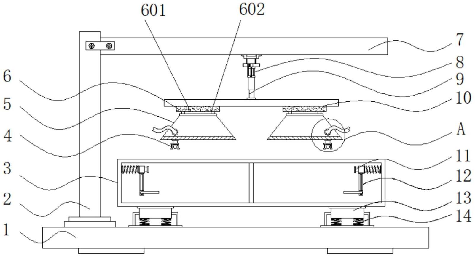本实用新型公开了一种自适应强的气枕充气装置,具体涉及气枕加工技术领域,包括底座和立柱,所述底座顶端的一侧固定连接有立柱,所述底座的顶端设置有加工台。本实用新型通设置有固定杆、滑道、缓冲块、缓冲座、弹簧、滑块、限位板和滑套,先将需要充气的气枕放置在加工台的内部,然后启动液压缸将支撑板底端的充气头移动到气枕的充气口处对其进行充气,充气时滑道一侧的限位板随着气枕的膨胀而升高,当限位板升高到一定的高度后就表示气枕所需的充其量已经足够,需要停止对其充气,然后将限位板向固定杆的一侧推动,再将气枕取出加工台即可实现充气过程,这样可以协助工作人员快速判断气枕的充其量,避免出现气过多或者过少的情况。