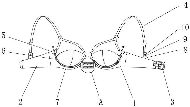 本实用新型涉及内衣技术领域,公开了一种钢圈可拆的透气文胸,包括下扒,所述下扒的两侧均固定连接有后比,所述下扒的上部均固定连接有罩杯,所述罩杯的上部均固定连接有肩带,所述肩带的一端固定连接有连接带,所述后比的上部一侧均固定连接有第一连接件,所述第一连接件通过卡扣二连接有连接带,所述罩杯的内部均设置有第一透气孔,所述下扒的内部均设置有支撑条,所述支撑条的下部设置有弹力带,所述弹力带的内部均设置有第二透气孔。本实用新型中,实现了能将人体产生的热量及时排出,达到透气的效果,且其吸汗效果较好,有助于提高穿戴的舒适度,并且使肩带便于进行调节,便于对肩带进行更换,以便后续可以继续使用。