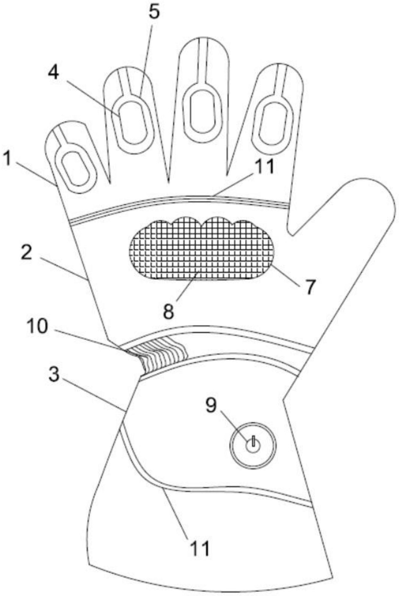 本实用新型公开了一种摩托车手套,包括手指部、手掌部和手腕部,在手指部的关节处设有关节保护垫,在关节保护垫外围设有防水皮革层,在手指部的指腹处外层设有导电纱,在手指部与手掌部的连接处设有透明凸起保护壳,在透明凸起保护壳的内腔中安装有闪烁灯,闪烁灯通过导线与电池按键相连,电池按键位于手腕部的内侧,在手掌部的手心处设有防滑橡胶。本实用新型提高了佩戴的舒适性和透气性,能够起到抑菌杀菌的效果,保证了手套与手腕的贴合性,能够对指关节和手背起到很好的缓冲保护作用,能够起到很好的警示作用,提高了夜骑的安全性;更加方便。