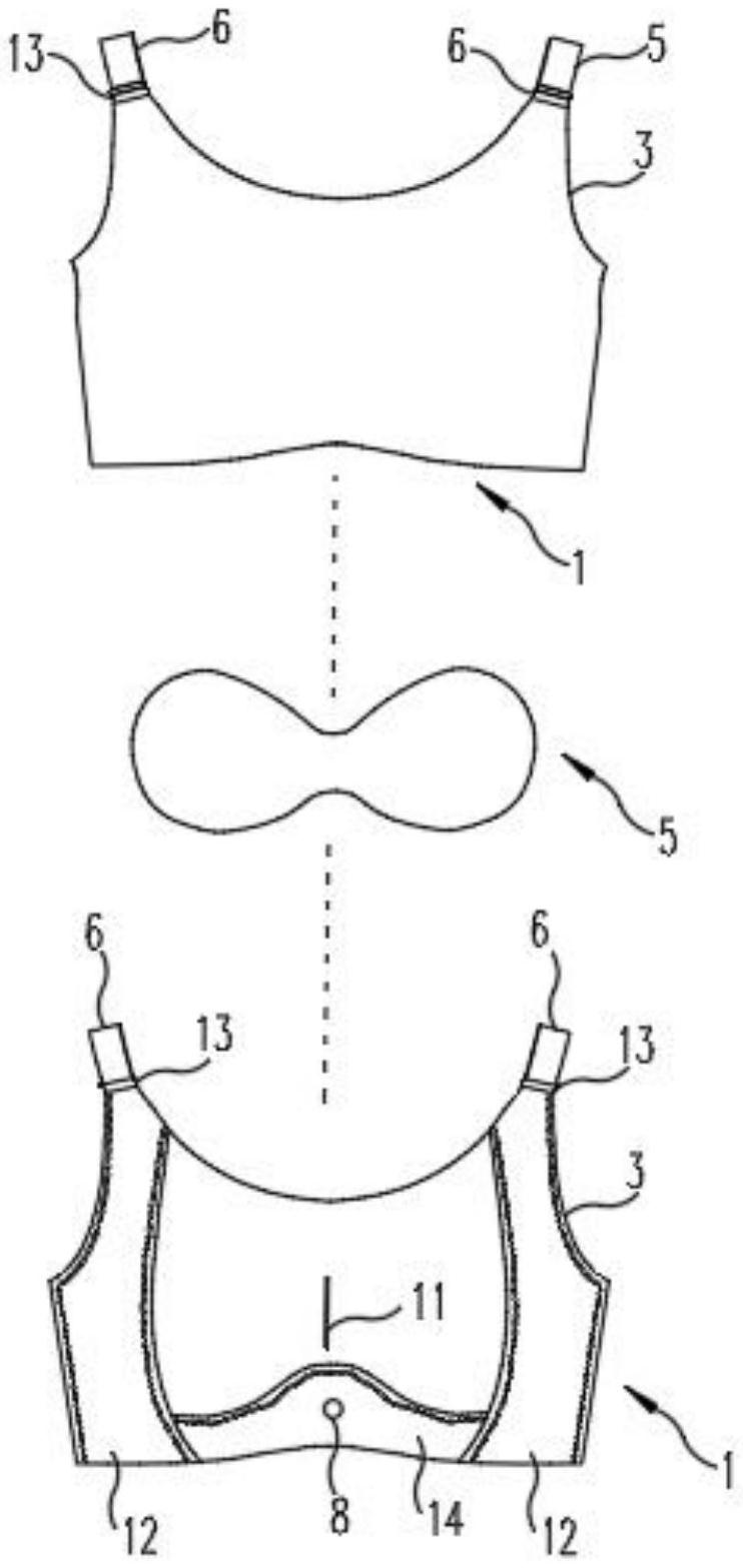 本实用新型公开一种无钢圈塑形文胸,属于文胸技术领域。包括:一个胸片,其一部分边缘连接于前片且胸片能够背离内圈的一侧,以使胸片与前片间形成一个能够容纳填充体的夹层;前片间形成一个开口;开口连通夹层;和一对固定片,其分别贴附固定于前片的两侧区域且延伸至前片与后片的交汇处。本实用新型解决了现有技术中无钢圈文胸锁脂、承托能力较差,不能随意更换填充体的问题。