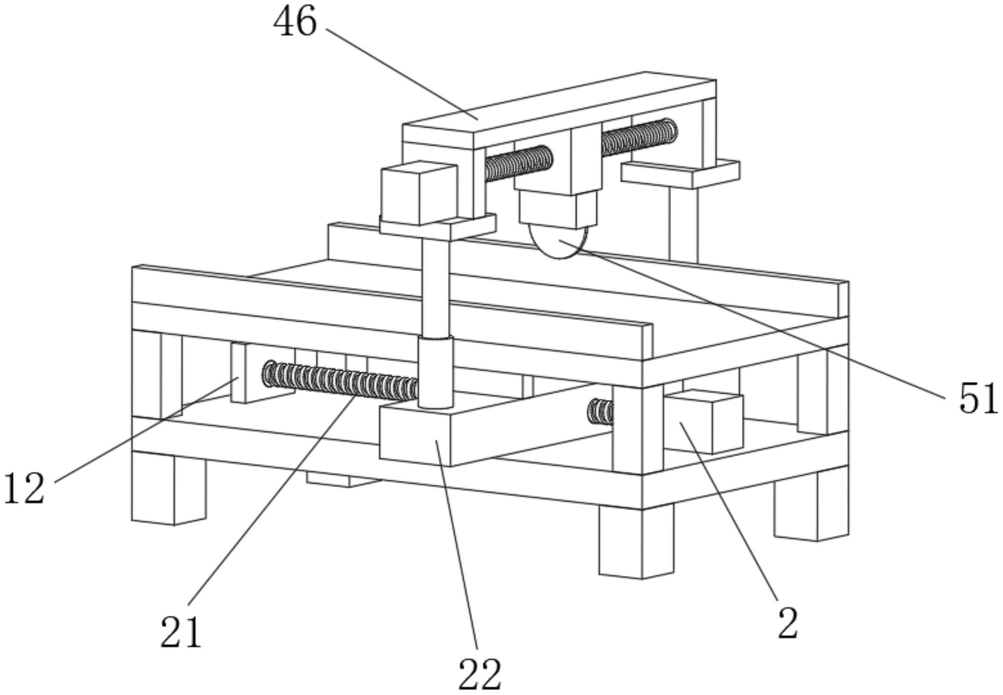 本实用新型涉及裁剪技术领域,具体为一种面料裁剪装置,包括底板,所述底板的上表面固定连接有四个支撑柱,所述底板的上表面固定连接有一个第一电机,所述第一电机的输出端固定连接有一个第一丝杠,所述第一丝杠的外表面螺纹连接有一个第一滑块,所述第一滑块的上表面固定连接有两个第一连接块,四个所述支撑柱的上表面固定连接有一个工作台。本实用新型的优点在于:通过设置有第一电机、第一丝杠和第一滑块,当第一电机启动时可以带动第一丝杠转动,第一丝杠与第一滑块之间是螺纹连接的,所以第一滑块可以随着第一丝杠的转动而做直线移动,可以带动电动推杆和连接板左右移动,最终能够实现裁剪刀的左右移动。
