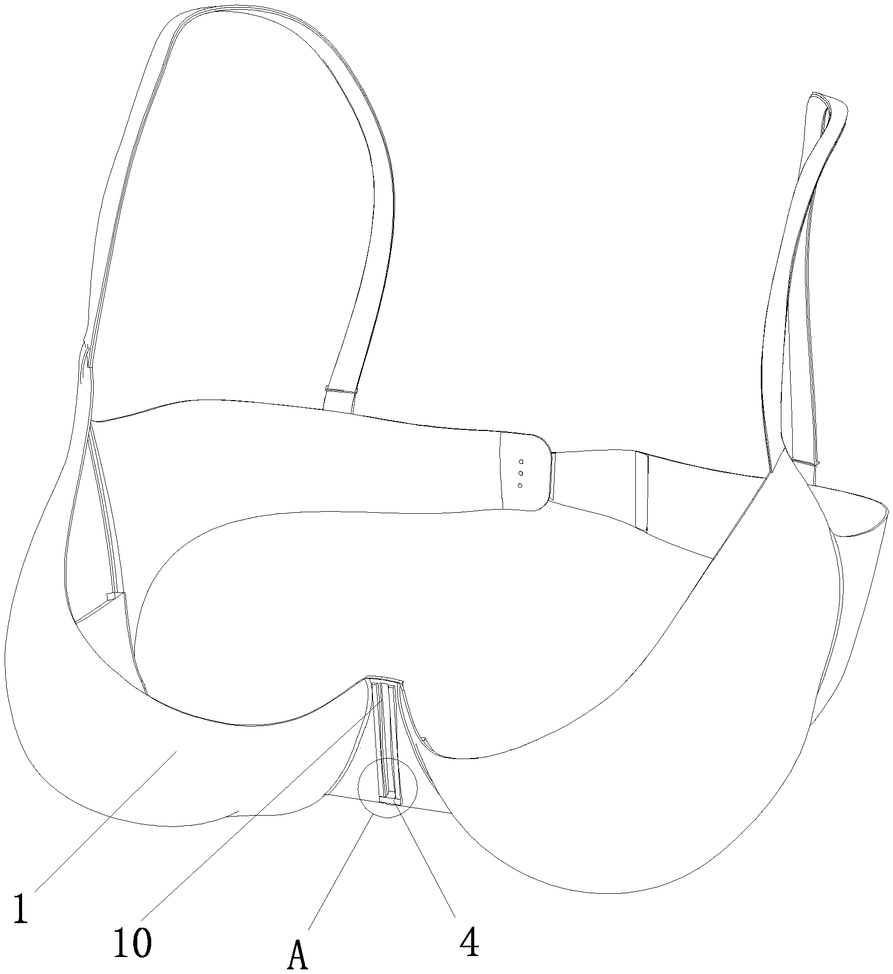 本实用新型公开了一种塑形胸罩,包括有胸罩本体,在所述胸罩本体罩杯之间的连接处竖向设有导向槽,在所述导向槽内活动设有移动块,在所述胸罩本体的罩杯内设有塑形胸托,所述移动块的两端分别与相邻的塑形胸托固定连接,在所述胸罩本体的肩带内活动穿接有拉绳,所述拉绳的前端与塑形胸托的外侧固定连接,所述塑形胸托底部与胸罩本体的罩杯底部之间设有弹力布,在所述胸罩本体的背带上设有能防止拉绳复位的单向锁定机构,在所述胸罩本体上位于导向槽旁设有能固定移动块位置的固定机构,当需要胸部聚拢的时候,通过拉动拉绳,使塑形胸托将胸部向中间聚拢,起到胸部聚拢的效果,通过将移动块向上移动并通过固定机构将移动块固定。