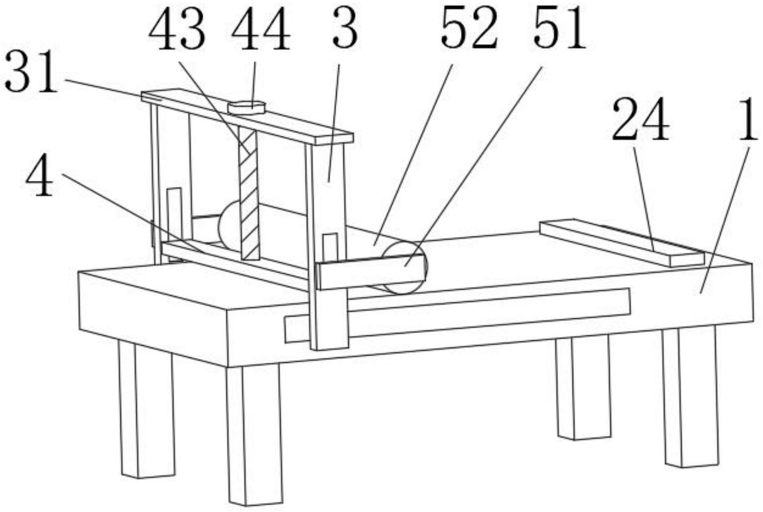 本实用新型属于展平机领域,具体涉及一种用于服装生产的服装展平机,包括支撑底,所述支撑底上设置有限位机构,所述支撑底上接触有支撑板,所述支撑板上固定连接有连接板,所述支撑板上固定连接有导向块,所述支撑底上开设有导向槽,所述导向槽的内部滑动连接有导向块。本实用新型通过设置有展平板、螺纹杆等部件,可通过转动螺纹杆,使螺纹杆带动展平板移动,可根据服装的厚度对展平的位置进行调节,使展平板更好的对服装进行展平,且通过设置有辊子、第二弹簧、限位块等部件,可使展平板对服装展平的同时辊子可以辅助对服装进行展平,解决了现有的用于服装生产的服装展平机在使用时对服装整体展平效果不佳的问题。