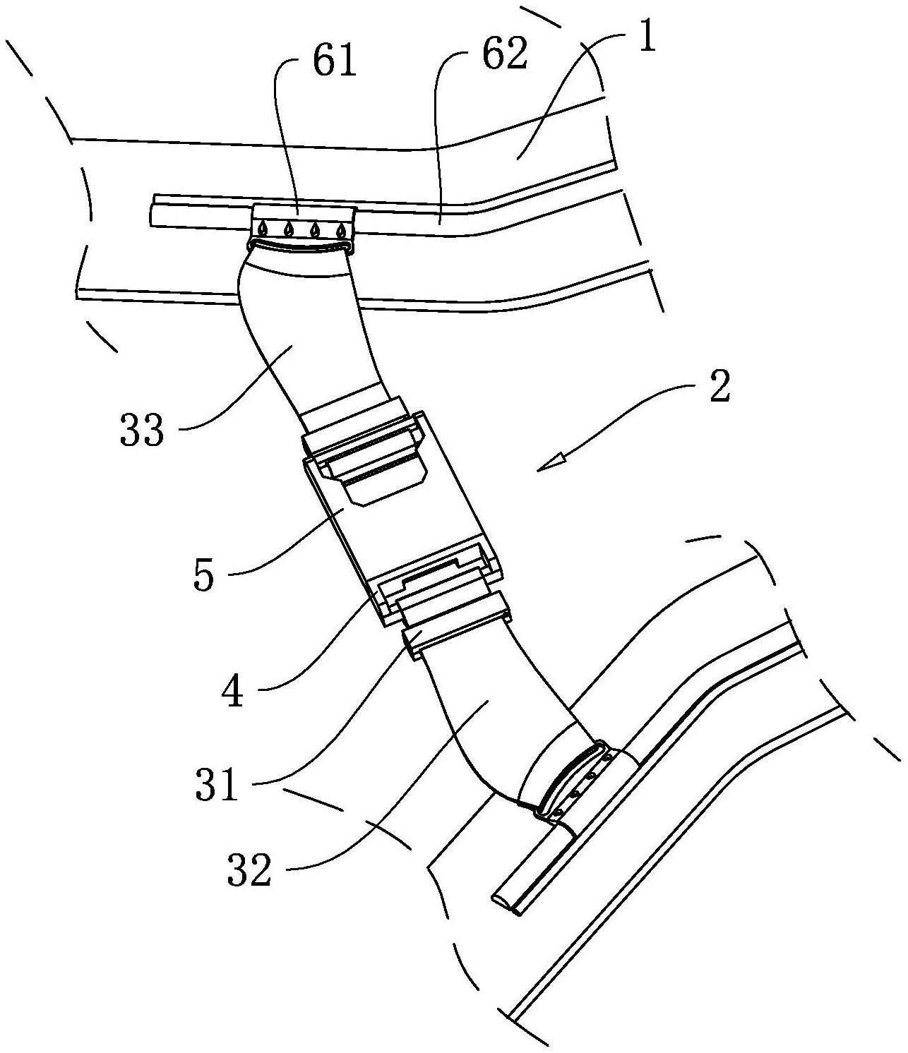 本申请涉及背包的技术领域,尤其是涉及一种背包肩带结构,包括两条肩带,两肩带之间滑动连接有束腰带,束腰带的中部设置有锁紧连接结构,锁紧连接结构包括有公扣和母扣,公扣和母扣之间相咬合,锁紧连接结构用于调节束腰带的长度尺寸,为了提高肩带与使用者肩部之间的服帖性,本申请提供一种背包肩带结构。