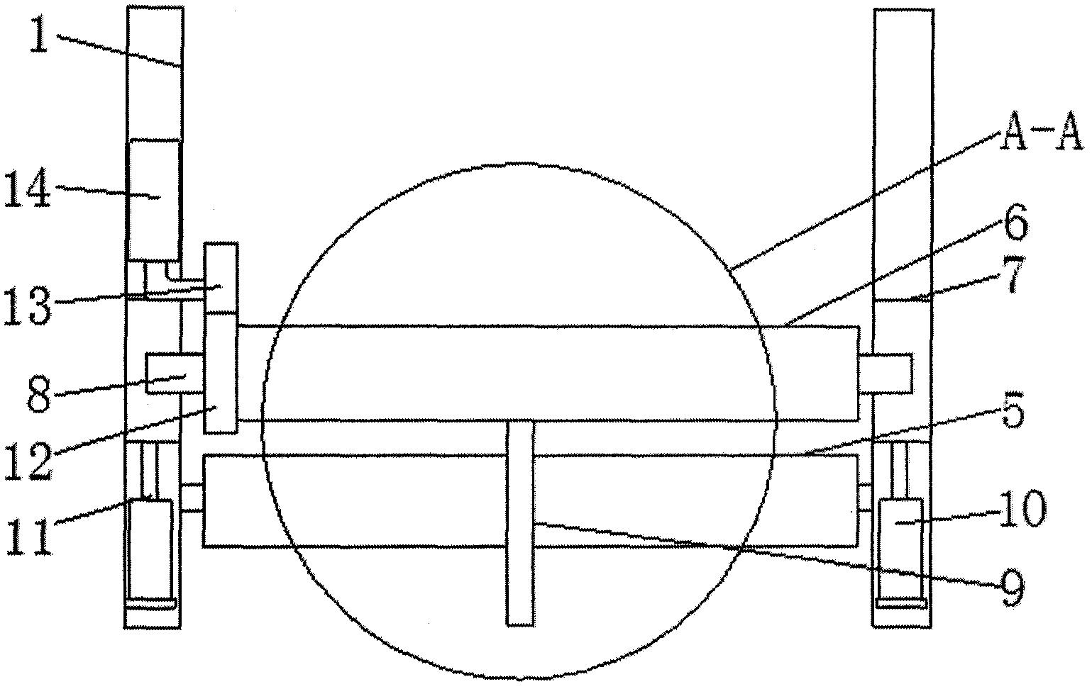 本实用新型公开了一种防滑储纱架,包括机架,机架的门状结构包括横梁和竖梁;竖梁的内侧设置有齿链带,竖梁的下部设置有安装座;竖梁的下部设置有下压辊,竖梁上设置有上压辊;上压辊的两端设置有链轮,链轮与上压辊两端的输出轴连接;上压辊上设置有限位杆,链轮的下方设置有液压气缸;上压辊上设置有传动齿轮,传动齿轮的上方设置有离合器,离合器的一端与传动齿轮齿合;离合器的一侧设置有减速电机。本防滑储纱架,启动液压气缸,液压气缸上的气缸推杆带动链轮,链轮在齿链带上移动,两个链轮之间的上压辊整体向上或者向下移动,通过上压辊上的限位杆防止储纱架在储纱过程中摩擦打滑,解决了纱线表面颜色脱落,造成经济损失的问题。
