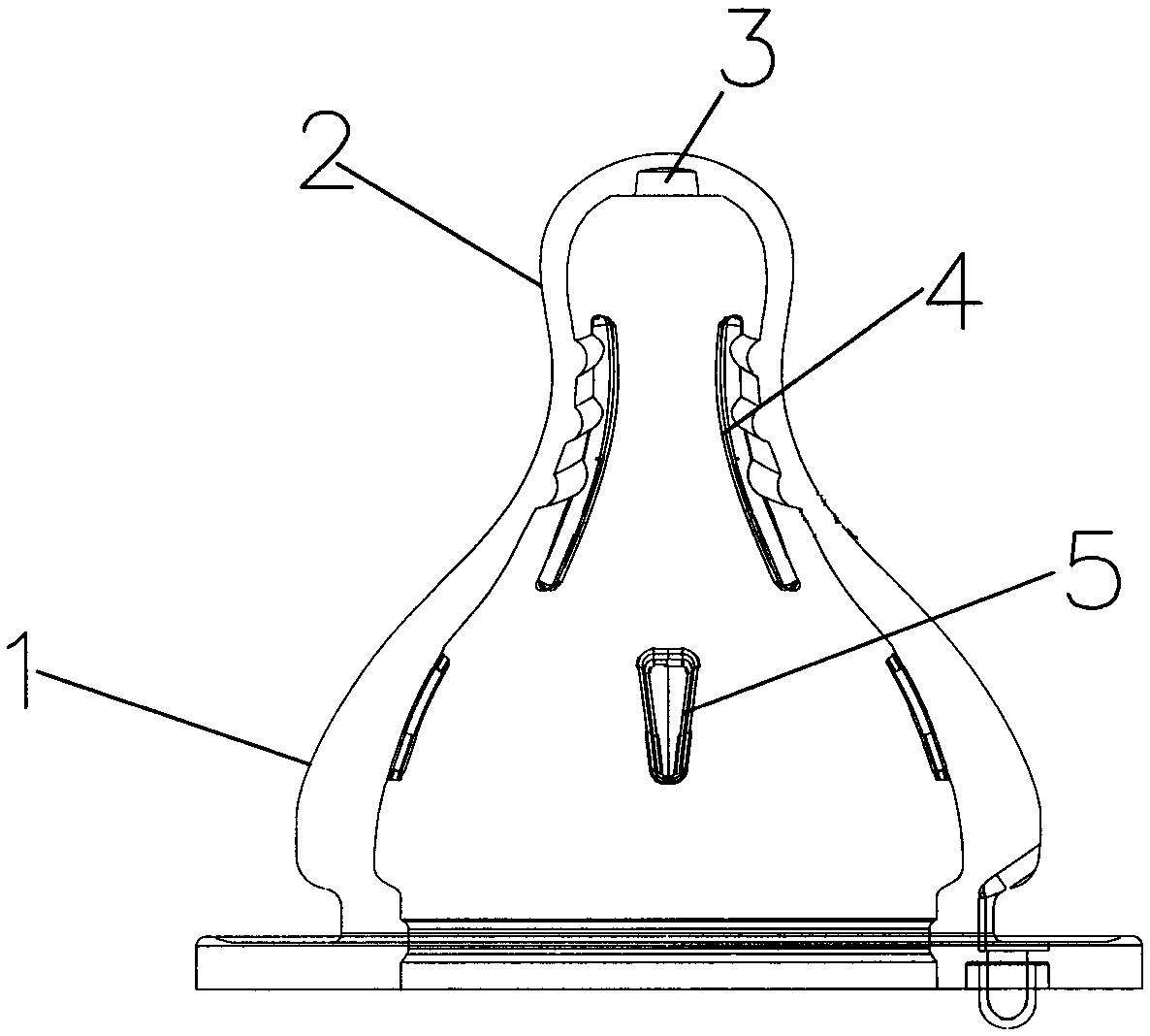 本实用新型公开了一种抗扯断奶嘴,包括奶嘴本体,所述奶嘴本体由底座和吸允部构成,吸允部的顶端设有出奶口;所述吸允部的内壁上设有两条对称设置的波纹加强筋;所述底座的内壁上设有加强块,本实用新型结构简单合理,使用非常的方便,整体在现有的机构基础上增设波纹加强筋和加强块,从而使得整体的抗拉扯强度得到有效的提高,避免了由于咬合出现破损现象,从而使得整体使用更加长久。