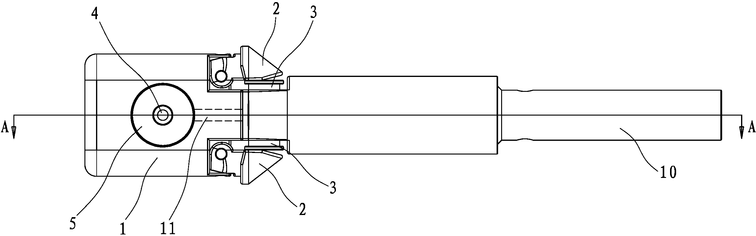 本实用新型公开了一种拉泡棉设备接头组结构,包括接头体、保护块、浮动块、定位柱、定位柱套。所述的定位柱套垂直安装在接头体的中部,在接头体内设有气道;定位柱活动套置在定位柱套的中孔内,定位柱套的中孔通过接头体内的气道与气管的中心管道连通,保护块的一端铰接在接头体内端,浮动块滑接在接头体内端与空心管外端之间,浮动块的外端顶靠在保护块并可驱动保护块向外摆动。由于本实用新型气流可通过浮动块驱动保护块而向外张开,使得套接在接头体上泡棉张开而容易紧贴在滑块体内孔壁上并防止泡棉被刮破,具有结构简单、动作稳定可靠的优点。