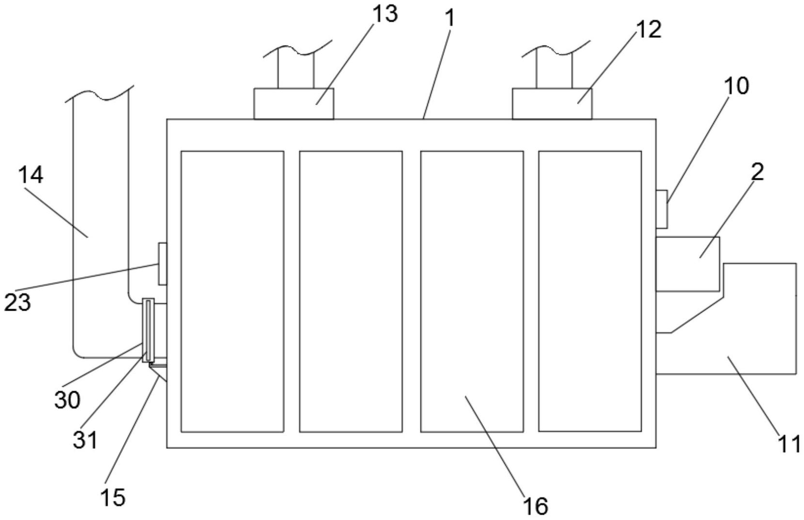 本实用新型公开了一种羽绒原料除尘设备,包括箱体和控制面板,箱体内安装有筛网,箱体的右侧安装有电机,电机与控制面板电连接,电机的转轴上连接有穿过箱体和筛网的支撑杆,支撑杆的顶端通过轴承座安装于箱体的左侧,使支撑杆能够在电机的驱动下在筛网内部转动,筛网内的支撑杆表面上设有若干个支杆,支杆不与筛网接触,箱体的顶部设有与控制面板电连接的引风机和排风机,引风机与筛网内部连通,排风机与筛网和箱体之间的空间连通,支撑杆下方的筛网左端设有排料口,排料口与箱体上安装的排料管连接,支撑杆下方的筛网右端设有进料口,进料口与箱体上安装的进料斗连接,本实用新型克服了现有技术的不足,设备除尘效果好,便于使用。