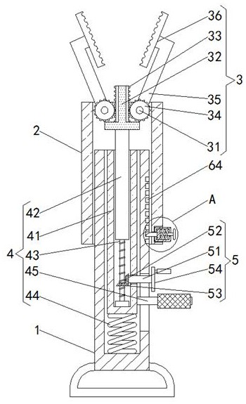 本实用新型涉及农业机械技术领域,且公开了一种高效智能的桑叶采摘结构,包括第一套筒,第一套筒的外侧设置有套管,所述套管的内部设置有一端延伸至其顶部的采摘组件。该高效智能的桑叶采摘结构,通过转动手摇转盘带动转动杆和驱动锥齿轮旋转,进而通过从动锥齿轮带动螺纹杆旋转,螺纹杆会不断的从螺纹套筒内旋出从而带动螺纹套筒在第二套筒内向上移动,进而通过挤压T型滑块带动套管整体向上移动,在限位组件上移的过程中,限位楔形块的左端受到挤压会间接性的移出和延伸至限位槽的内部,保证了在高度调节完成后限位楔形块能够对套管的位置进行限制,实现了可对采摘高度进行调节的目的,大大提高了适用性。