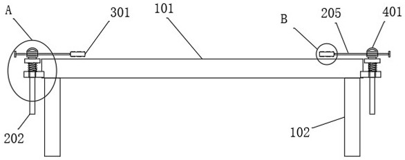 本实用新型属于蚕丝被生产技术领域,尤其涉及一种具有睡眠监测功能的智能蚕丝被生产装置,包括生产床板以及固定于其底部四角的支撑柱,所述生产床板的四角均固定连接有压被机构;所述压被机构包括有固定在生产床板侧壁上的水平座,所述水平座上竖直活动贯穿有竖杆,所述竖杆的顶部固定连接有水平的挡盘,且挡盘的顶部转动连接有转动座;本实用新型中,工作人员可以便捷控制压板下压,压实生产床板上的蚕丝被,避免其拉丝过程中翘起,且转动座可在挡盘上转动,即压板和横杆均可在挡盘上进行转动,使用时可根据实际情况需要更加方便地调节压板的位置,本实用新型结构简单,设计巧妙,易于推广。