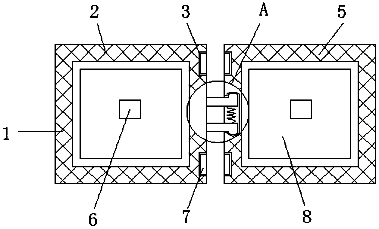 本实用新型提供一种可拼接组合的吸顶灯,涉及灯具领域,包括第一灯体和第二灯体,第一灯体与第二灯体的均由灯罩和光源本体组成,灯罩套设光源本体的外表面,第一灯体与第二灯体的相对面靠近两端边缘处卡设有凹槽,凹槽共设置有四个,且四个凹槽的关于第一灯体与第二灯体的水平中线对称。本实用新型中,此款吸顶灯采用多个灯体进行拼装组成,通过拼装式的组成结构,便于对灯具进行携带与运输,在灯具与灯具的交界处设置有卡杆,卡杆卡合在卡槽的内部,通过复位弹簧将卡杆的位置进行限定,增强卡杆在连接处的稳定性,避免灯体在连接处的松动,在灯体的内部设置有热敏开关,此装置结构简单,操作步骤简单,灵活性强。