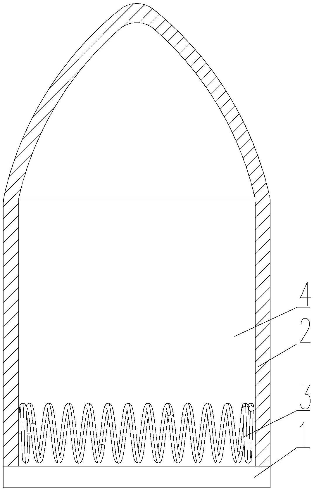 本实用新型涉及氘灯技术领域,尤其是涉及一种射频氘灯,包括底板、罩壳以及弹簧圈,底板能够供光透过,罩壳能够遮挡光,罩壳安装在底板上,罩壳和底板围绕构成空腔,弹簧圈安装在空腔内,且弹簧圈的端部抵住其所在侧的罩壳内壁,空腔内填充有氘气,以高频电磁波对罩壳内的弹簧钢加热,共同对氘气进行击发,摒弃了电极,体积可以做的更小,对常客空间能够更有效的利用。