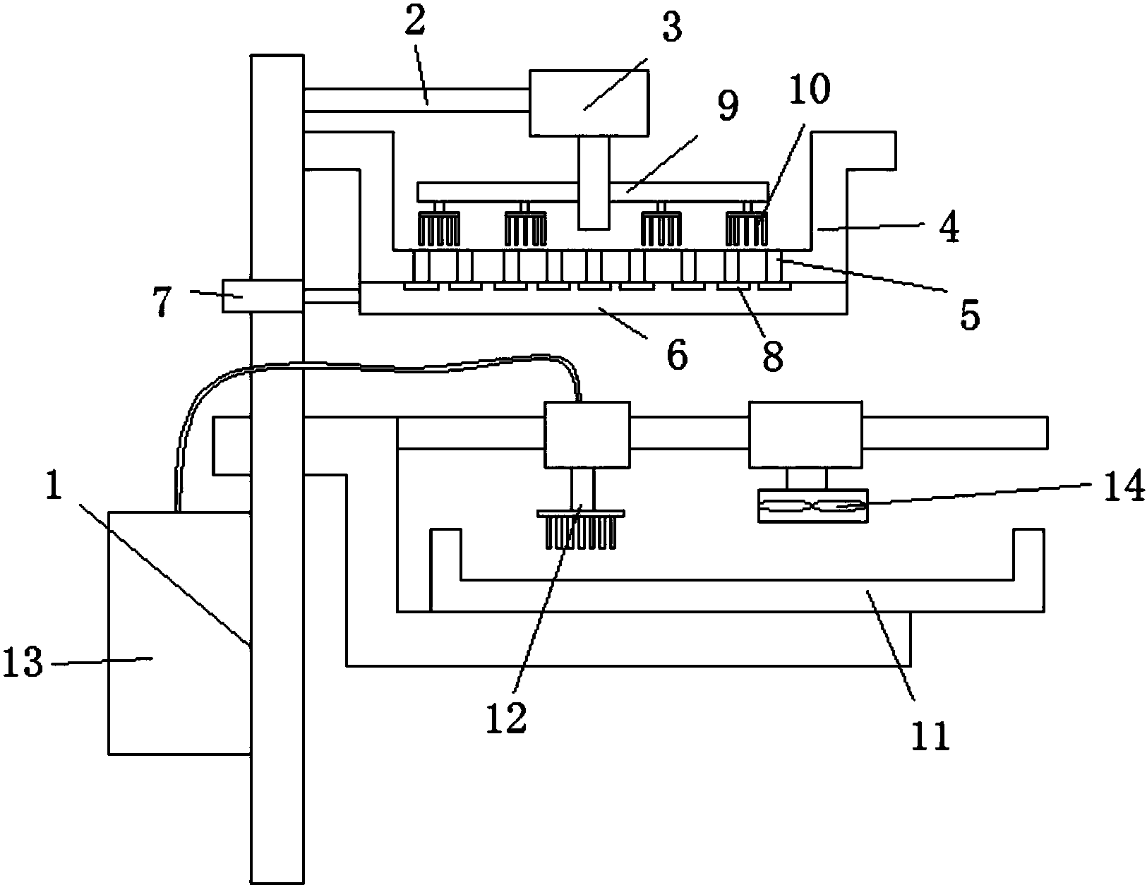 本实用新型公开了一种床垫生产用软面垫加工装置,包括支撑柱,其特征在于:所述支撑柱的侧壁上设有横梁板,所述横梁板的上搅拌电机,所述搅拌电机的下方设有羊毛搅拌清洗除味槽,所述清洗除味槽的底部设有排水孔,所述排水孔下方设有堵孔板,所述堵孔板表面设有多个堵孔塞,堵孔塞与排水孔匹配。本实用新型结构简单,床垫的羊毛的处理效率高,除味效果好,柔软舒适度高。