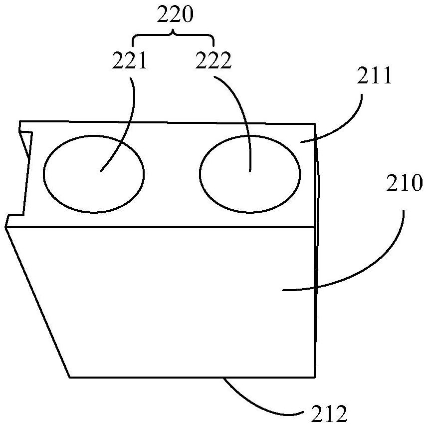 本实用新型提供了一种内嵌式LED壳体和内嵌式LED阵列,该内嵌式LED壳体第一侧面,具有至少一个安装孔,所述安装孔适于容纳一个LED并使所述LED的透镜完全嵌入所述安装孔中,不露出于所述第一侧面之外;以及第二侧面,与所述第一侧面相对设置,所述第二侧面具有至少两个平行设置的引脚槽,所述至少两个引脚槽适于容纳所述LED的至少两个引脚,其中,所述安装孔与所述引脚槽连通。该内嵌式LED阵列包括该内嵌式LED壳体以及位于所述内嵌式LED壳体的每个安装孔中的LED,所述LED的透镜完全嵌入所述安装孔中,不露出于所述第一侧面之外。采用本实用新型的内嵌式LED壳体所形成的内嵌式LED阵列可以保护LED透镜免受触碰、刮擦,并避免串光。