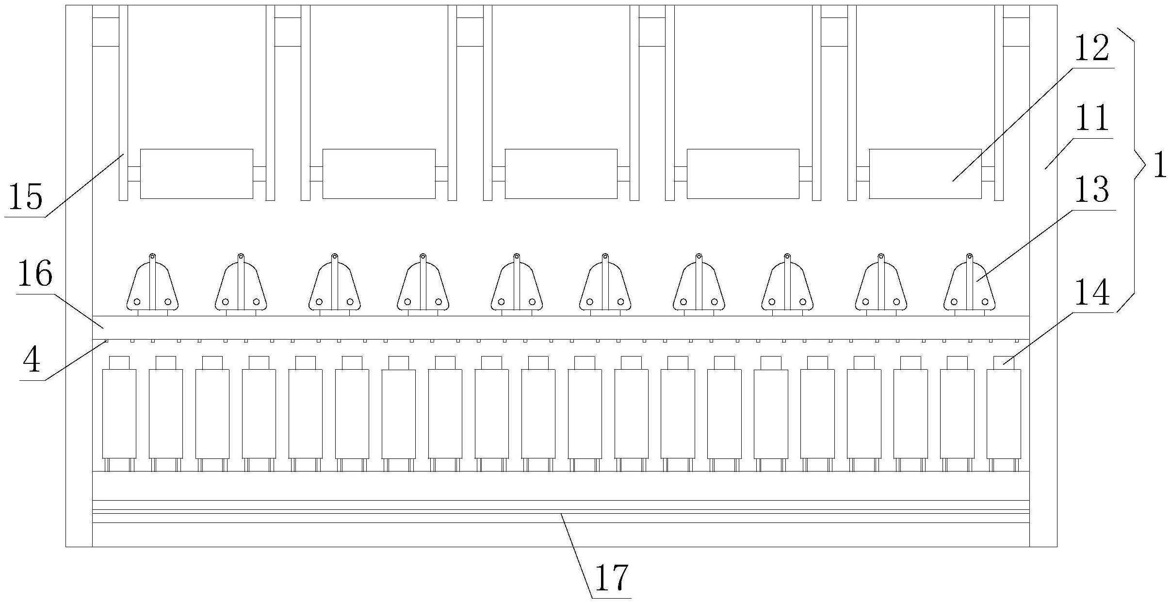 本实用新型公开了一种具有落纱自动对准结构的纺织机,包括纺织机本体和落纱机构,所述纺织机本体包括机架、原料辊、分线座和缠绕辊,机架上端通过螺栓与原料辊支架固定连接,支撑架上表面分别通过螺栓与分线座固定连接,机架下端一侧分别通过螺栓与导轨固定连接。本具有落纱自动对准结构的纺织机,通过第一红外接收器配合限位柱对纱线起到限位的作用,防止缠绕时造成位移,保证了对纺织机落纱的整理效率和质量,同时确保纺纱辊和纱线在作业时保持垂直,有效的提高定位的精准度,通过第二红外信号接收器与红外信号发射器信号传输连接,进行自动定位对准,定位精准,自动化程度高,大大减少了人工劳动力。