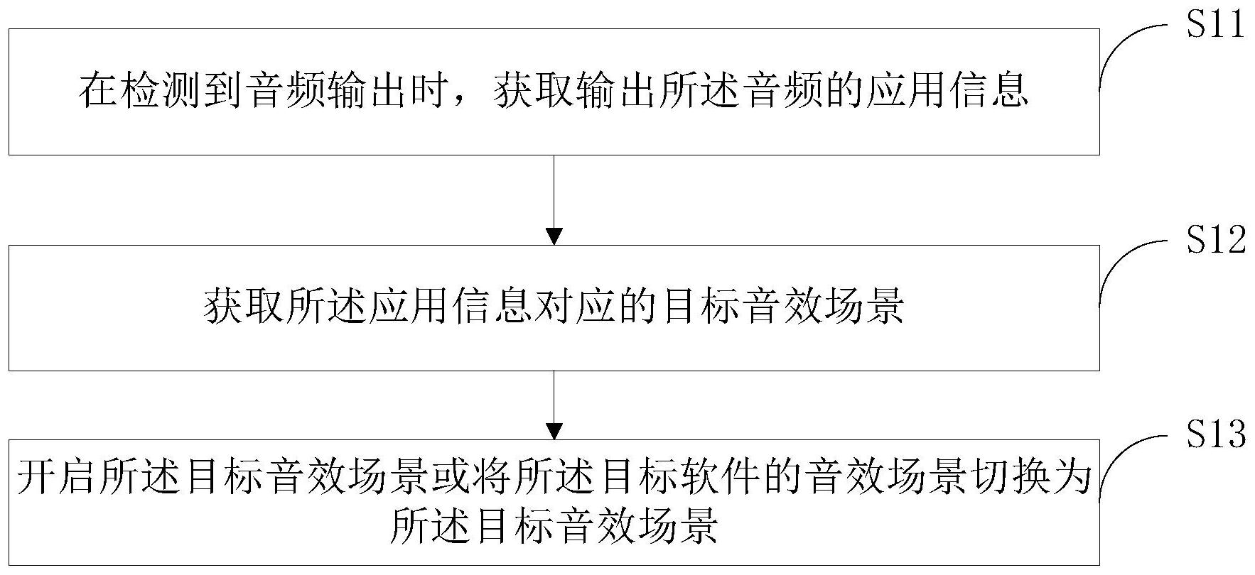 本发明公开了一种音效场景的控制方法,包括以下步骤:在检测到音频输出时,获取输出所述音频的应用信息;获取所述应用信息对应的目标音效场景;开启所述目标音效场景或将当前音效场景切换到所述目标音效场景。本发明还公开了一种终端及计算机可读存储介质。所述音效场景的控制方法通过根据软件获取对应的音效场景,实现对音效场景的自动切换,操作简便智能,提高了用户的体验度。