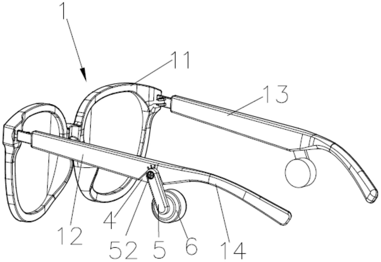 本实用新型涉蓝牙眼镜技术领域,公开了一种可旋转的骨传导蓝牙眼镜,包括眼镜主体,所述眼镜主体包括眼镜框,所述眼镜框两端分别铰接有第一眼镜腿和第二眼镜腿,所述第一眼镜腿和第二眼镜腿均设置有便于眼镜佩戴的钩部,第一眼镜腿和第二眼镜腿内部均设置有控制主板和驱动电池,控制主板与驱动电池电性连接,所述钩部前方设置有安装槽,所述安装槽中连接有可调节角度的延伸臂,所述延伸臂端部固定连接有骨传导壳体,骨传导壳体内部设置有骨传导装置;本实用新型具有如下优点:1.骨传导耳机部旋转设置,位置可调,适应不同人群使用,适用范围广;2.将眼镜与骨传导耳机相结合,既能减轻佩戴难度,又不受外部噪音影响;3.结构简洁,实用性高。
