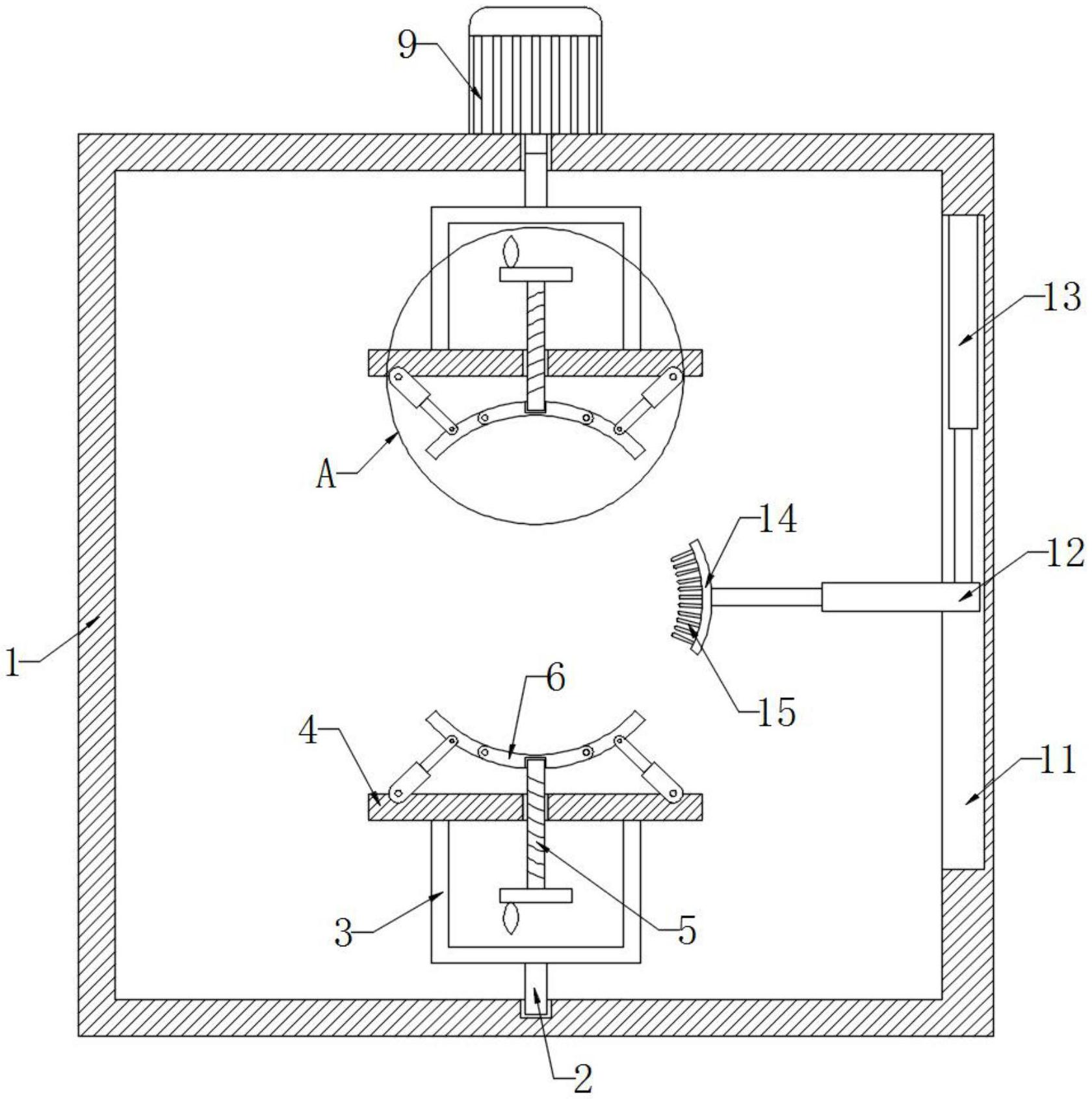 本实用新型公开了一种用于球形饰品的表面抛光装置,包括箱体,所述箱体内顶部和内底部均通过转轴转动连接有U型板,所述U型板远离转轴的侧壁固定连接有横板,所述横板侧壁螺纹连接有螺纹杆,所述螺纹杆远离转轴的一端转动连接有第一弧形板,所述箱体上端固定连接有电机,所述电机活动端与位于上方的转轴上端固定连接。本实用新型通过调节伸缩杆使得伸缩杆上的活动轴保持活动状态,然后将球形饰品放在两个第一弧形板之间,转动螺纹杆使得两个第一弧形板与球形饰品侧壁接触,进而对球形饰品进行初步夹紧,随后调节伸缩杆,使得第二弧形板与球形饰品侧壁紧密接触,进而对球形饰品进行再次夹紧,操作简单,实用性强。